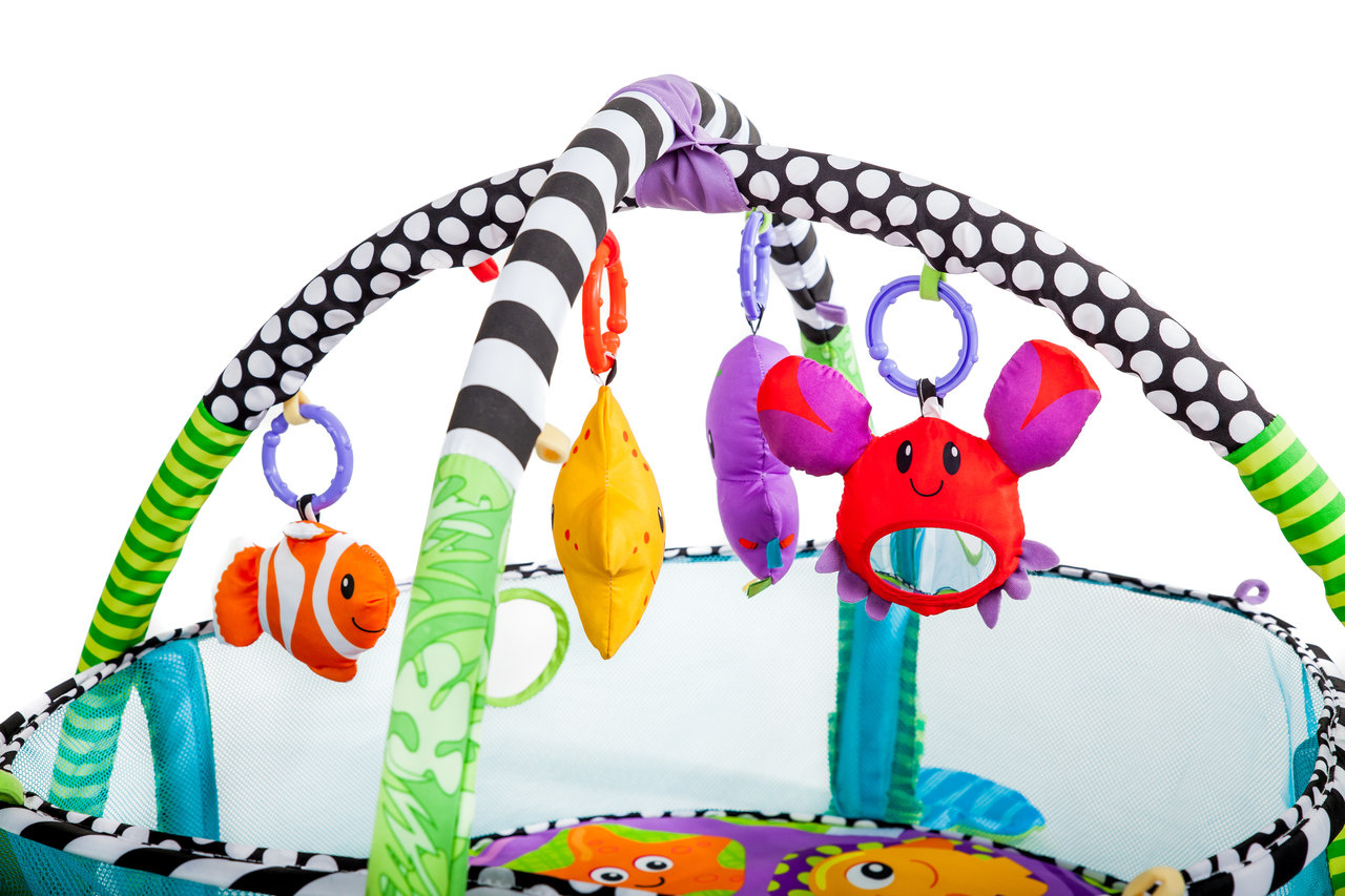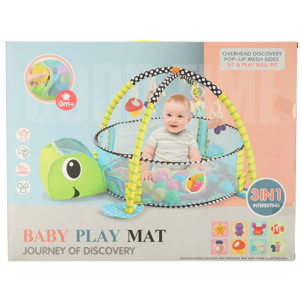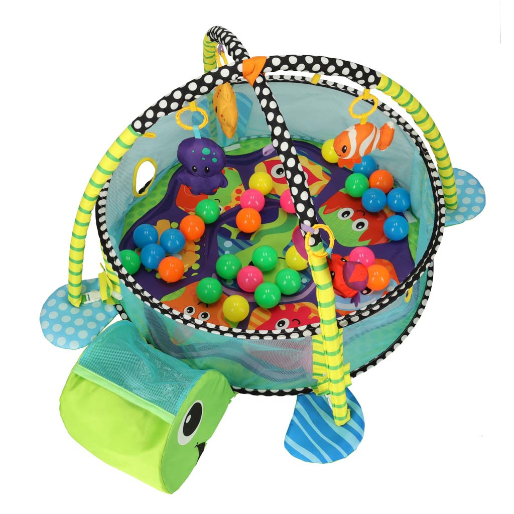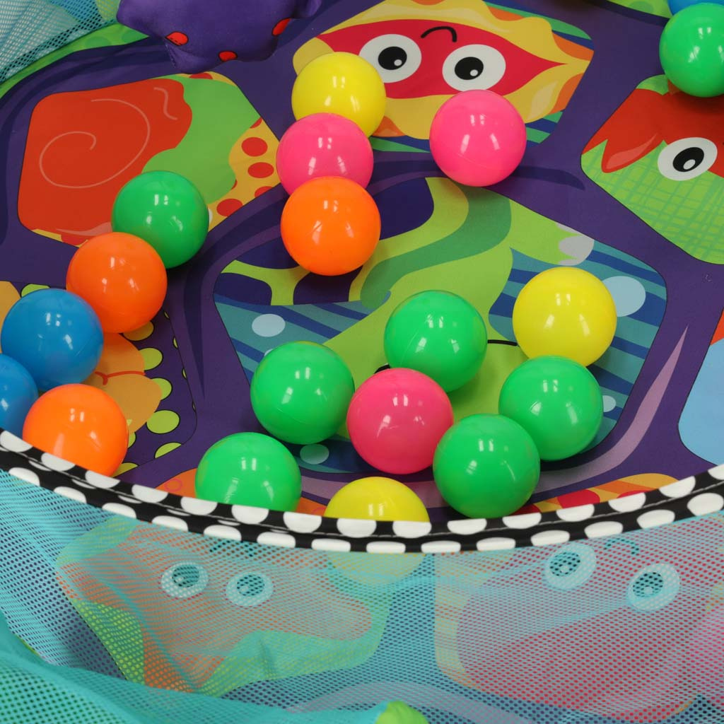 K podložce je také připevněna síť, která po rozložení promění podložku na bazének, kam dáte hračky a míčky a dítě si bude moci bezpečně hrát.