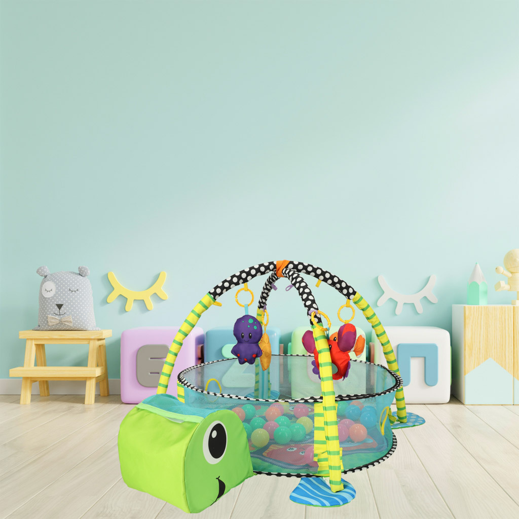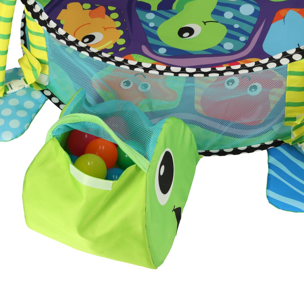 Multifunkční vzdělávací podložka želva je vyrobena z barevného, měkkého a kvalitního materiálu. Perfektní jako gymnastická podložka pro děti od prvních okamžiků života. Barevné plyšové hračky a míčky v 6 živých barvách, které jsou k ní připevněny, povzbudí každé dítě ke hře a navíc stimulují smysly a podpoří motorický vývoj každého dítěte.