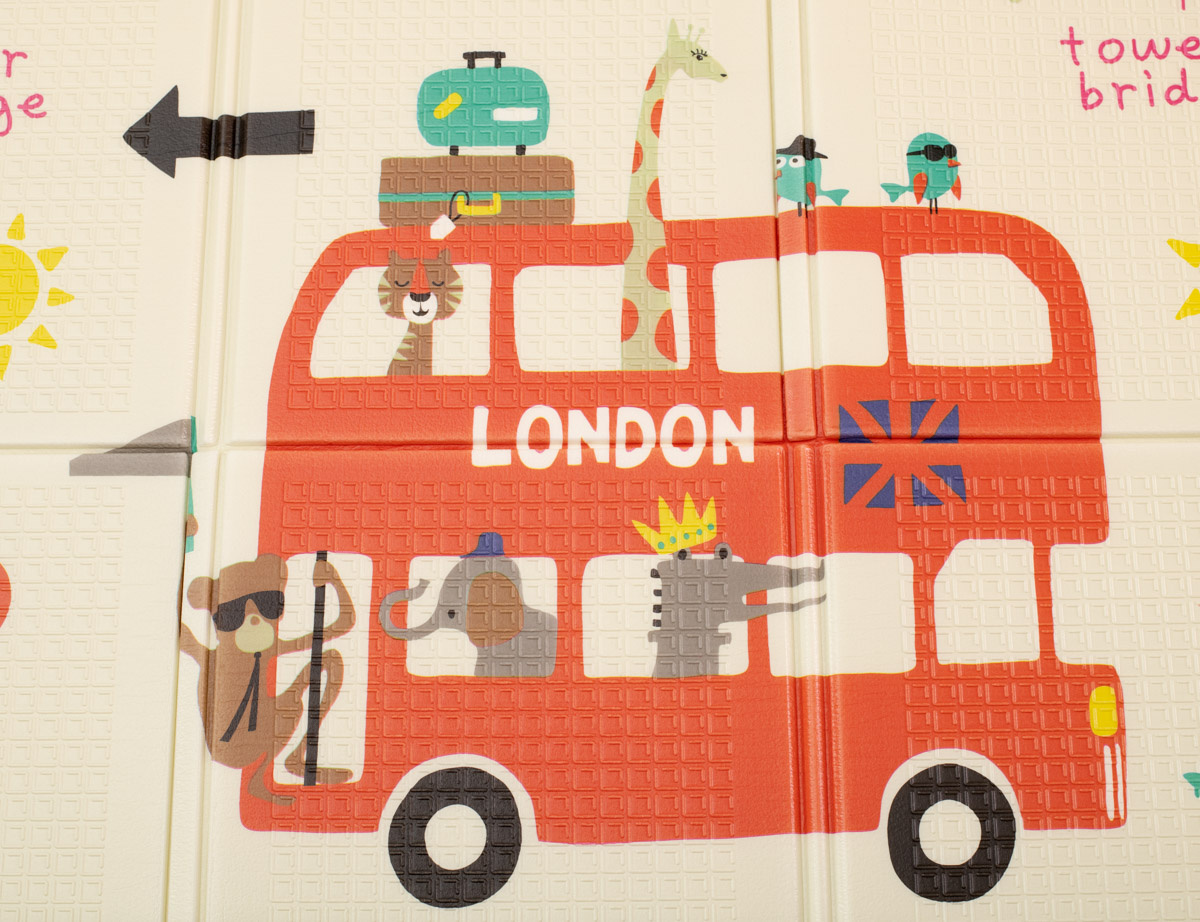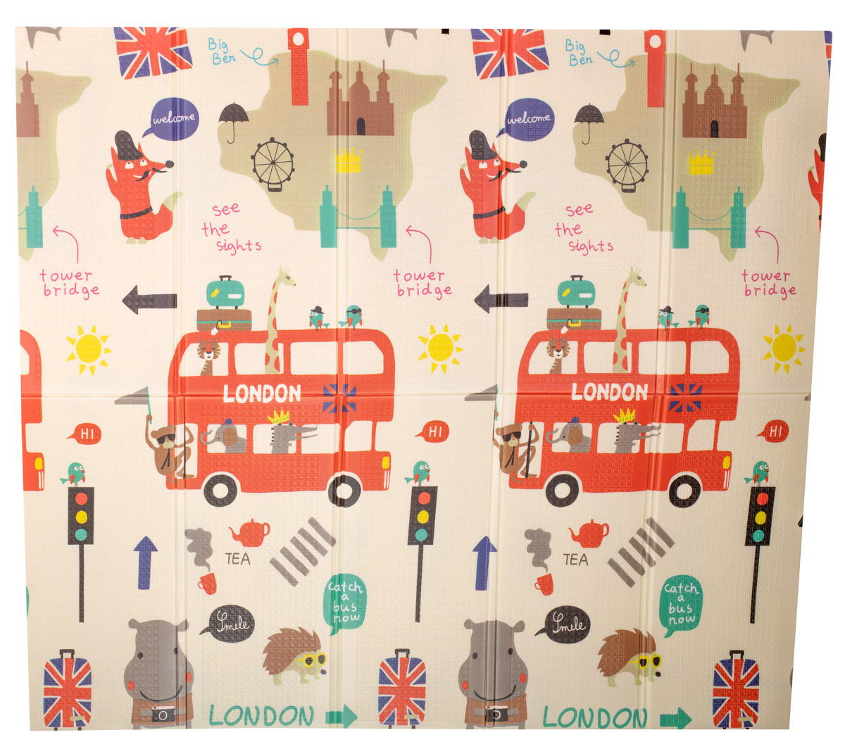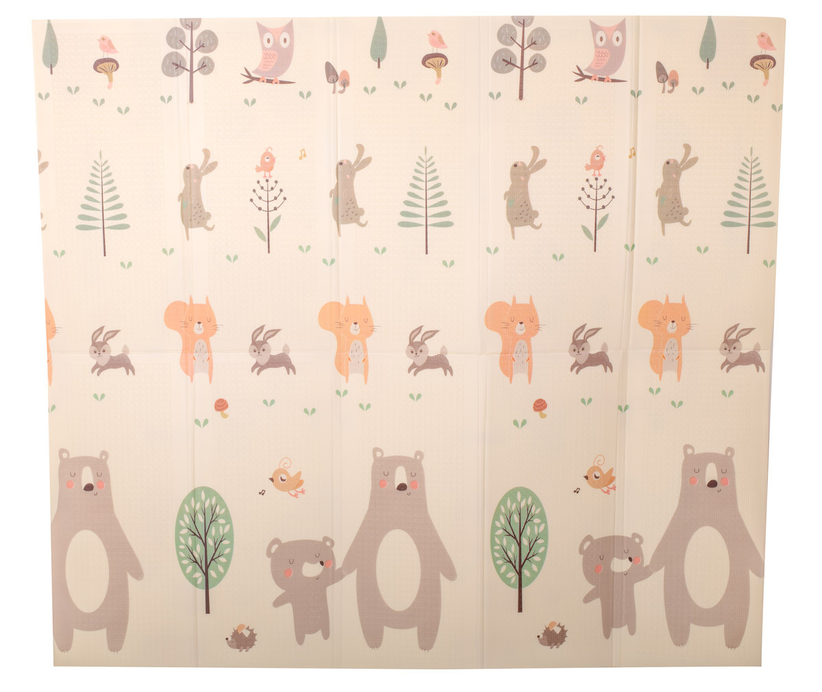 Měkká, velká, skládací, protiskluzová pěnová podložka. Lze jej použít jako hrací koberec. Na každé straně je jiný potisk. K dispozici v krémové barvě s potiskem sovy a dalších zvířat. Vyrobeno z voděodolné pěny. Rozměry: 200 x 180 cm