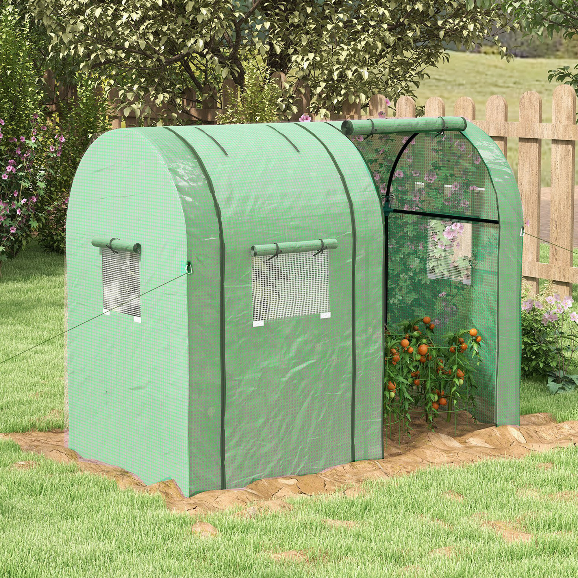 Široké rolovací dveře s dvojitými zipy pro jednodušší vstup. Rolovací dveře je možné srolovat a upevnit nahoře.