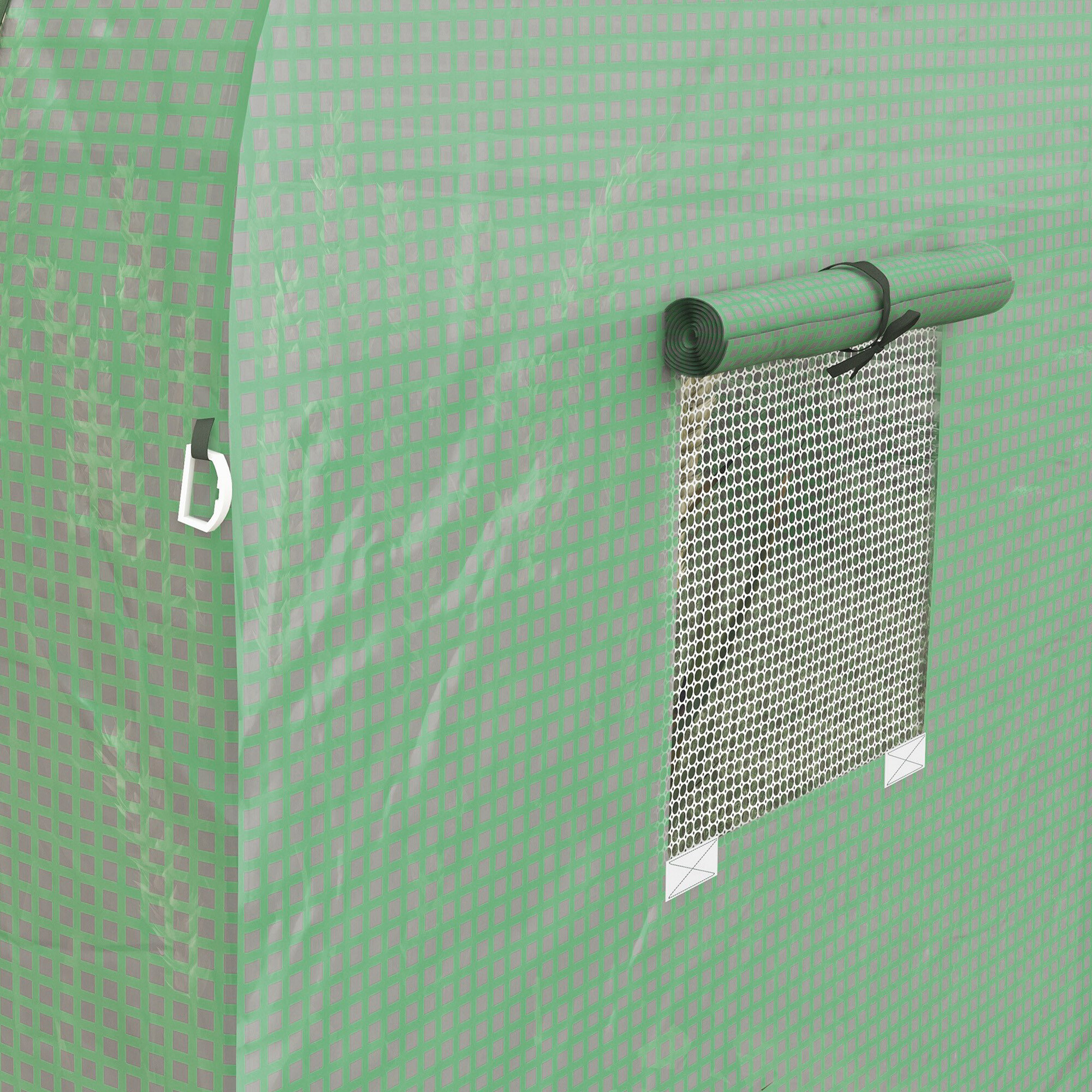 Transparentní vrstva PE fólie dodává pozoruhodné vlastnosti termoregulace a maximální propustnosti světla. Zelená sítka mesh z PP zapuštěná ve struktuře fólie ji zesiluje a chrání proti protržení a mechanickému poškození.