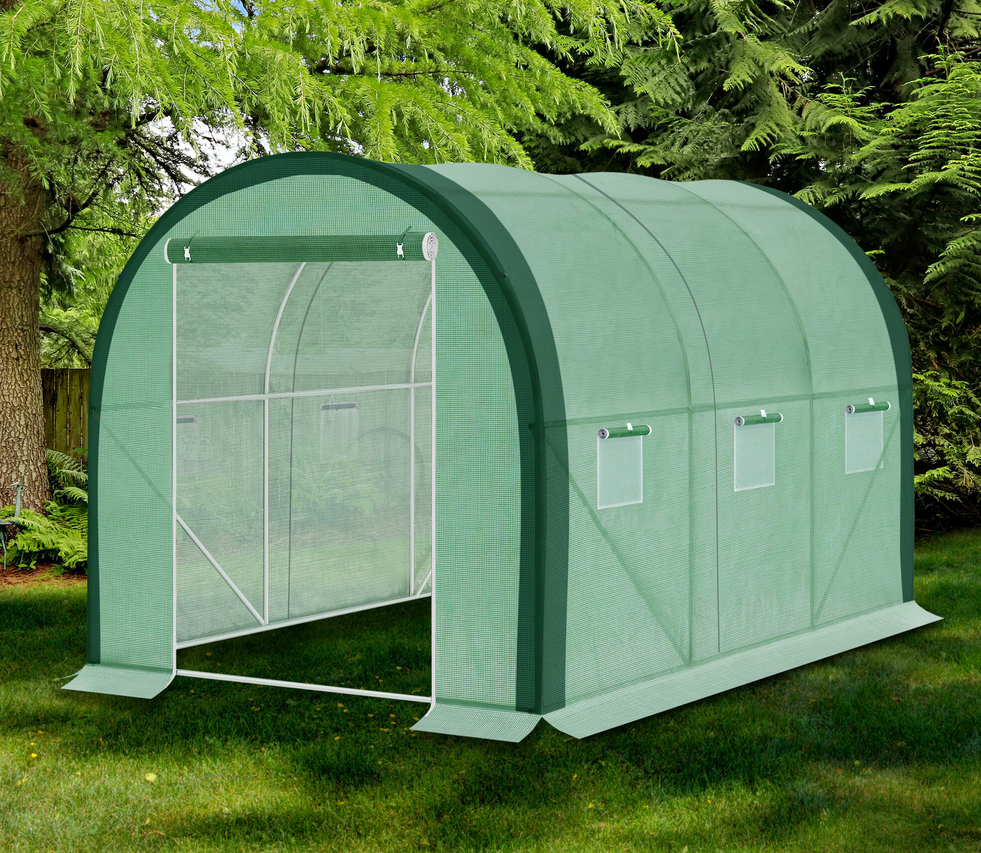 Optimální výška 213 cm umožňuje volně se pohybovat a vykonávat práci ve fóliovníku.