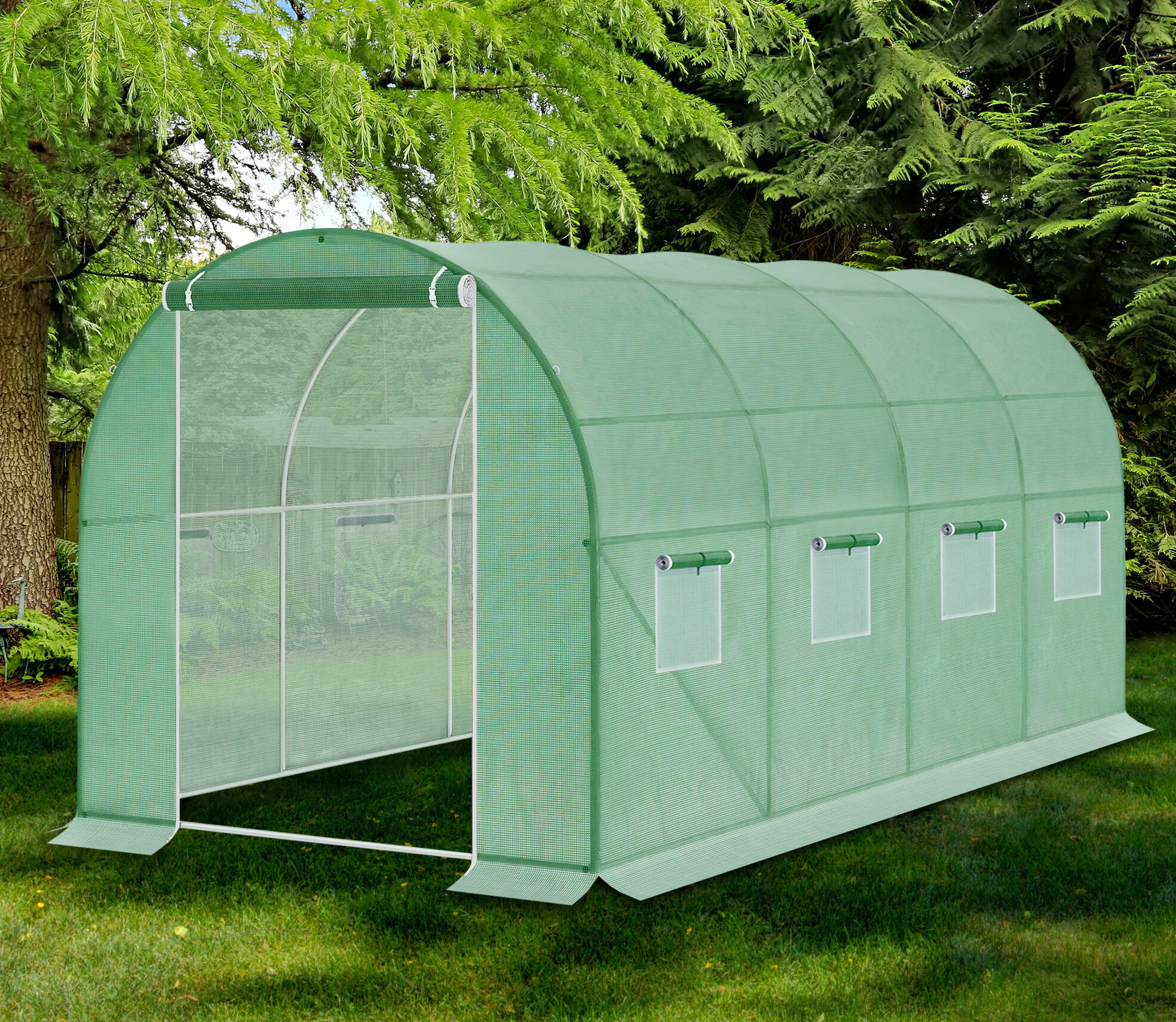 Optimální výška 200 cm umožňuje volně se pohybovat a vykonávat práci ve fóliovníku.