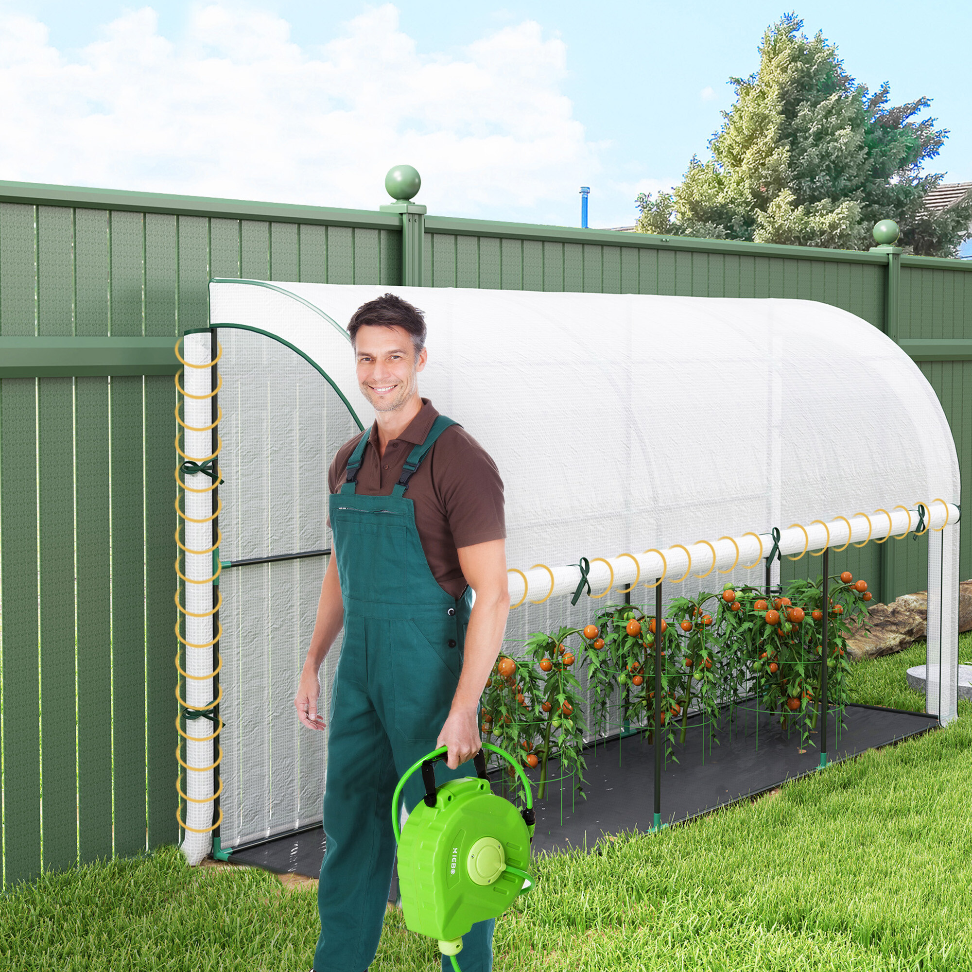 Fóliovník je lehký, takže ho můžete snadno přemístit dle potřeb a má rolovací dveře pro jednodušší vstup.