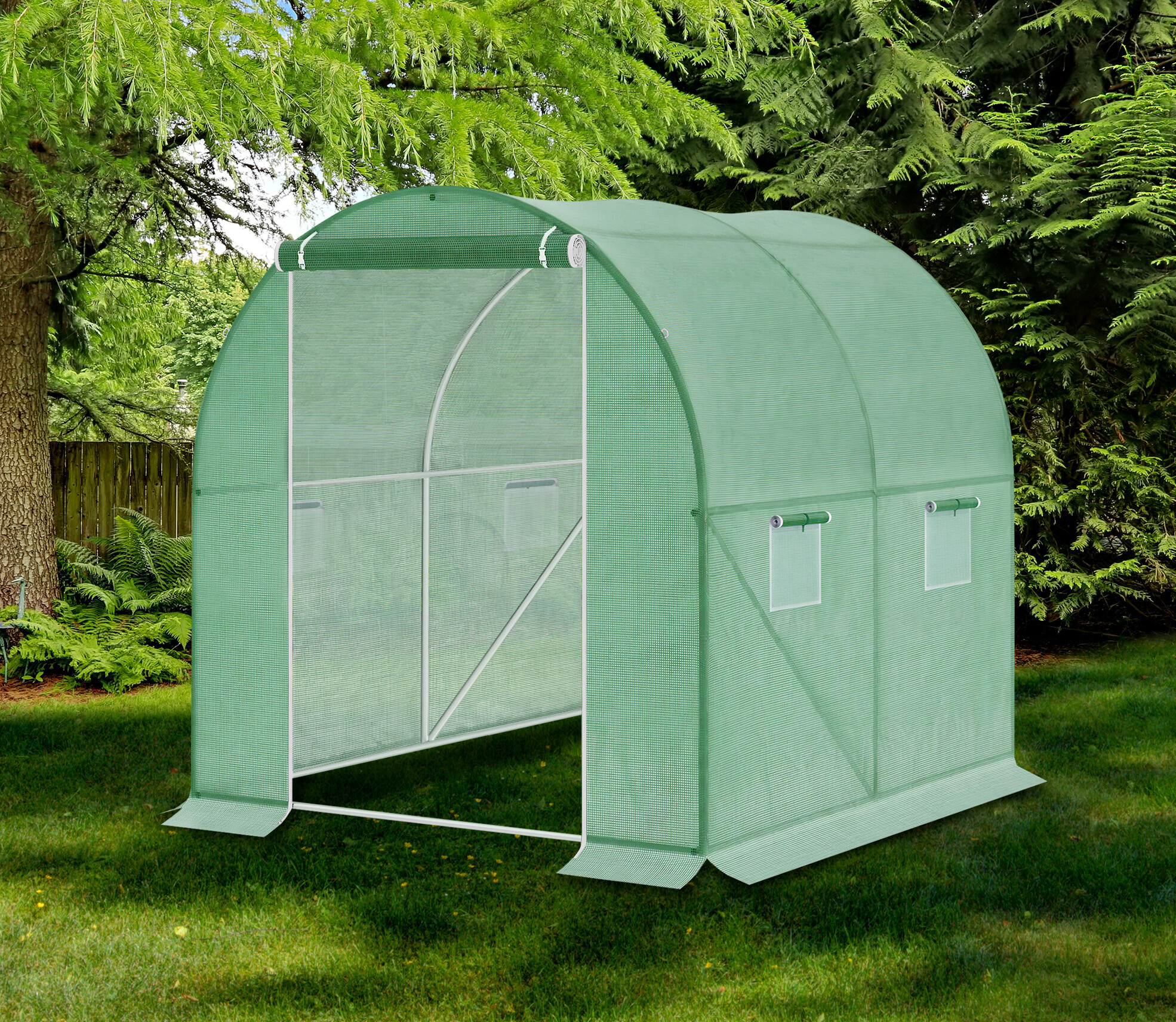 Optimální výška 200 cm umožňuje volně se pohybovat a vykonávat práci ve fóliovníku.