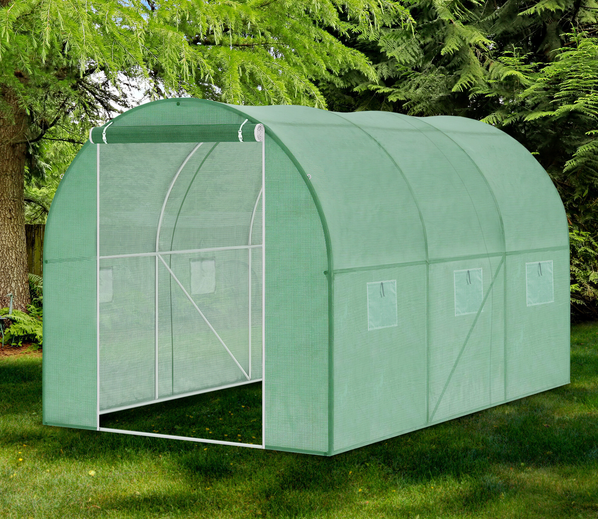 Optimální výška 200 cm umožňuje volně se pohybovat a vykonávat práci ve fóliovníku.