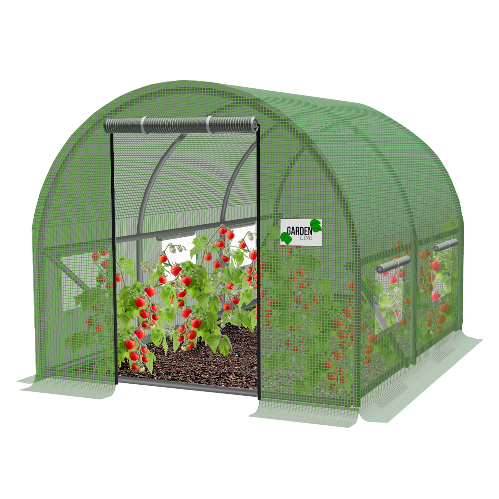 Optimální výška 200 cm umožňuje volně se pohybovat a vykonávat práci ve fóliovníku.