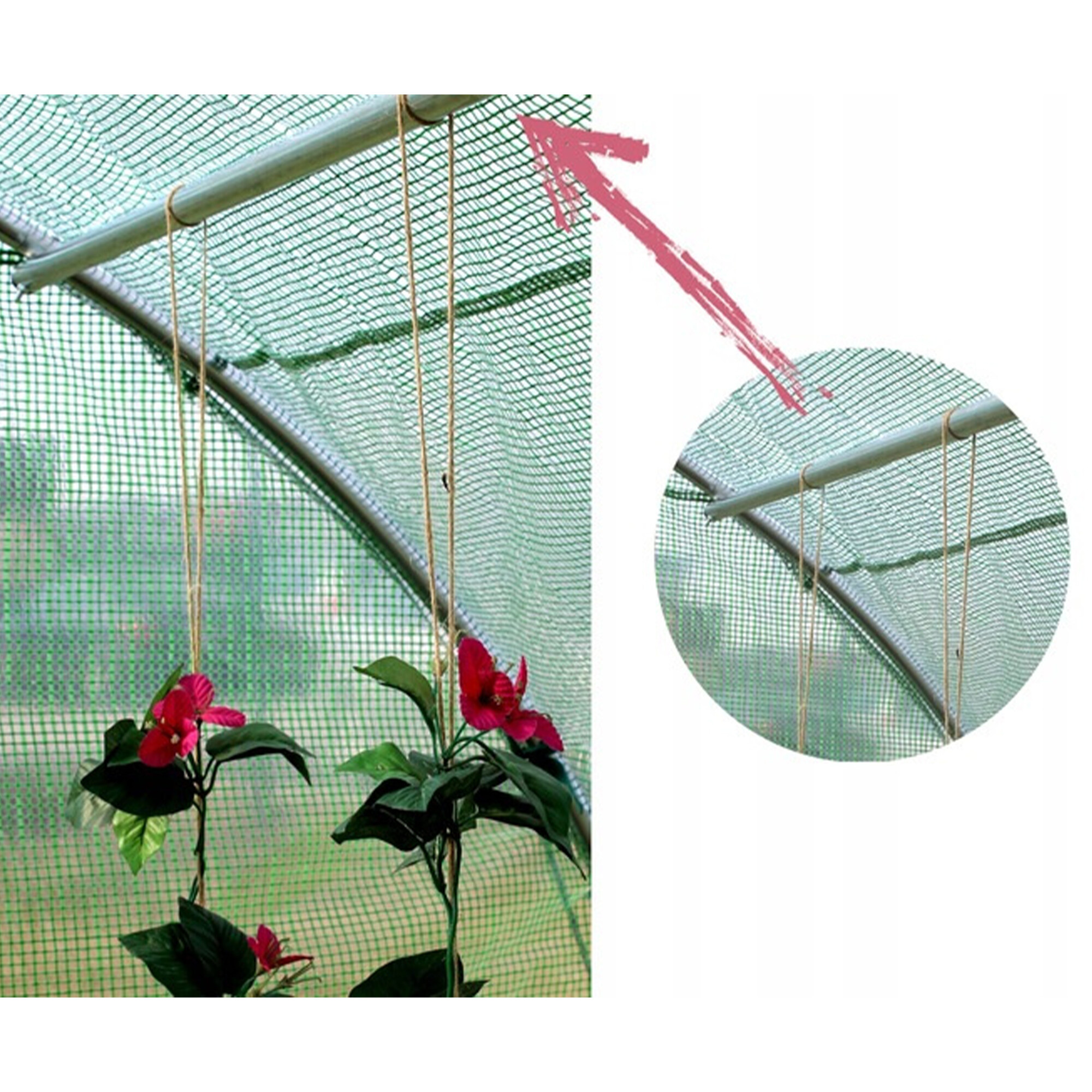 Transparentní vrstva PE fólie dodává pozoruhodné vlastnosti termoregulace a maximální propustnosti světla. Zelená sítka mesh z PP zapuštěná ve struktuře fólie ji zesiluje a chrání proti protržení a mechanickému poškození.