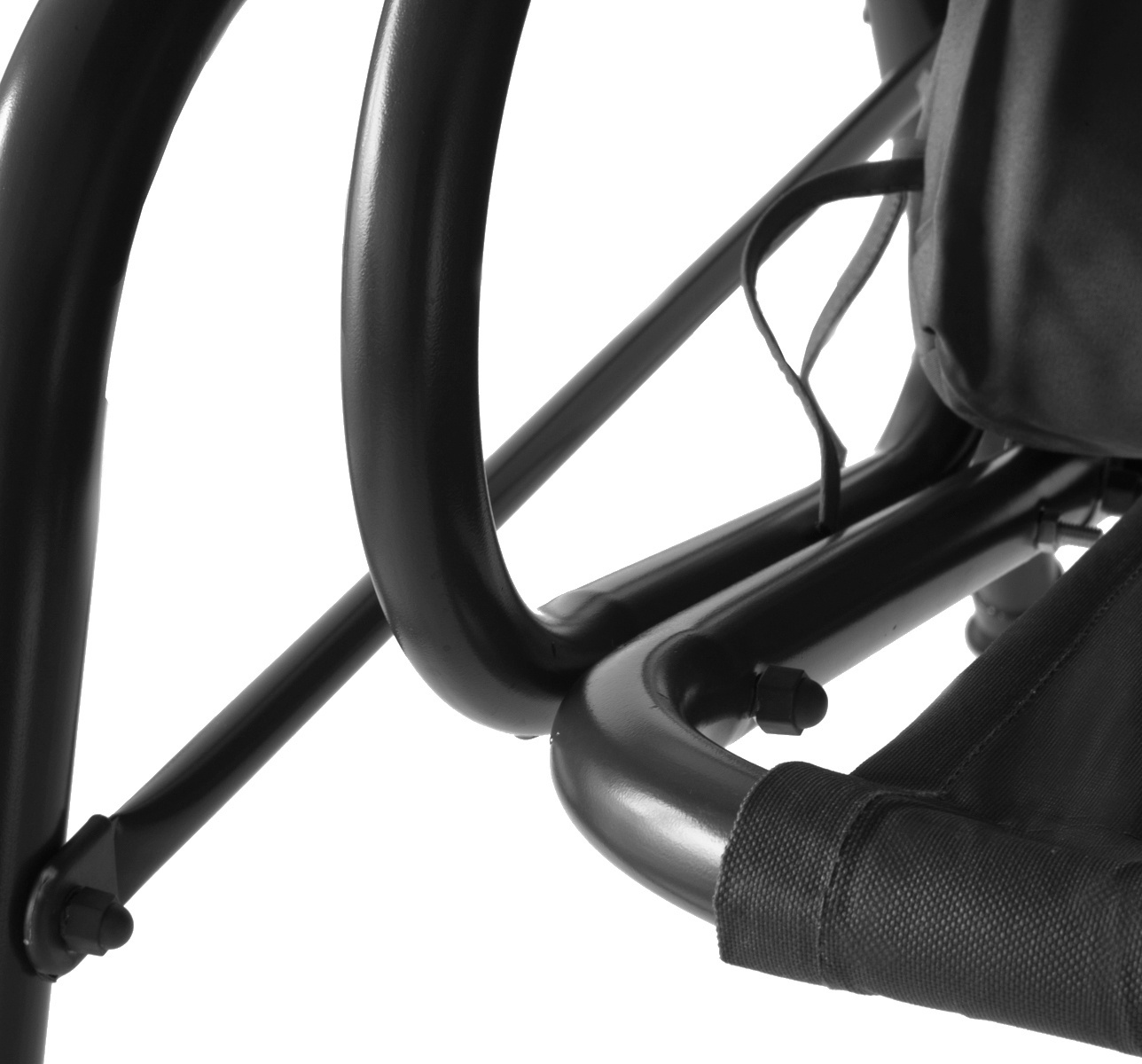 Zesílená lakovaná ocelová konstrukce s kvalitními sváry a protiskluzové gumové patky, zaručují houpačce potřebnou stabilitu a bezpečí, při jejím používání.