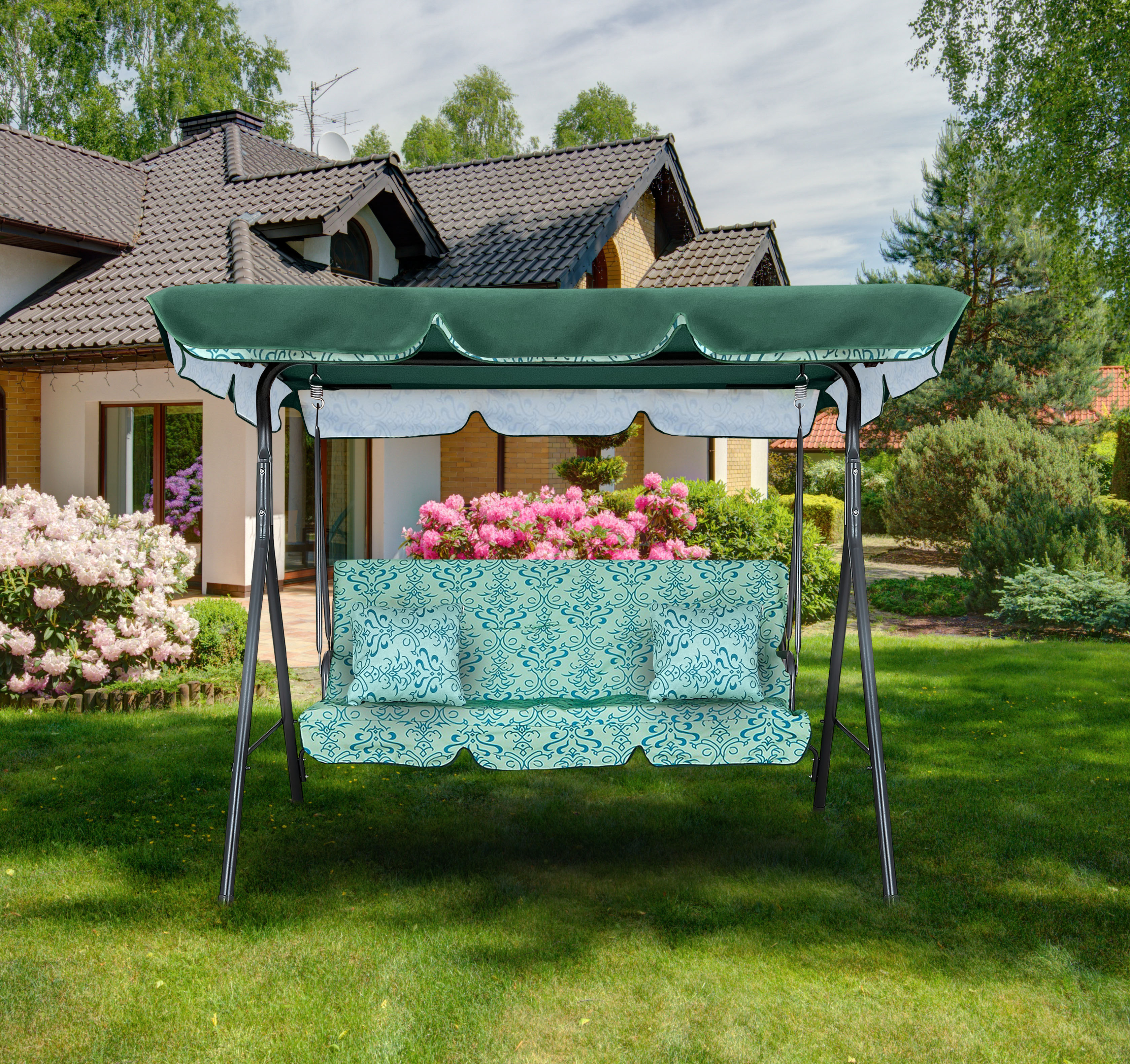 Zahradní houpačka MAJKA v moderním designu, vhodná pro venkovní využití na zahrady, terasy, balkóny či pláže.