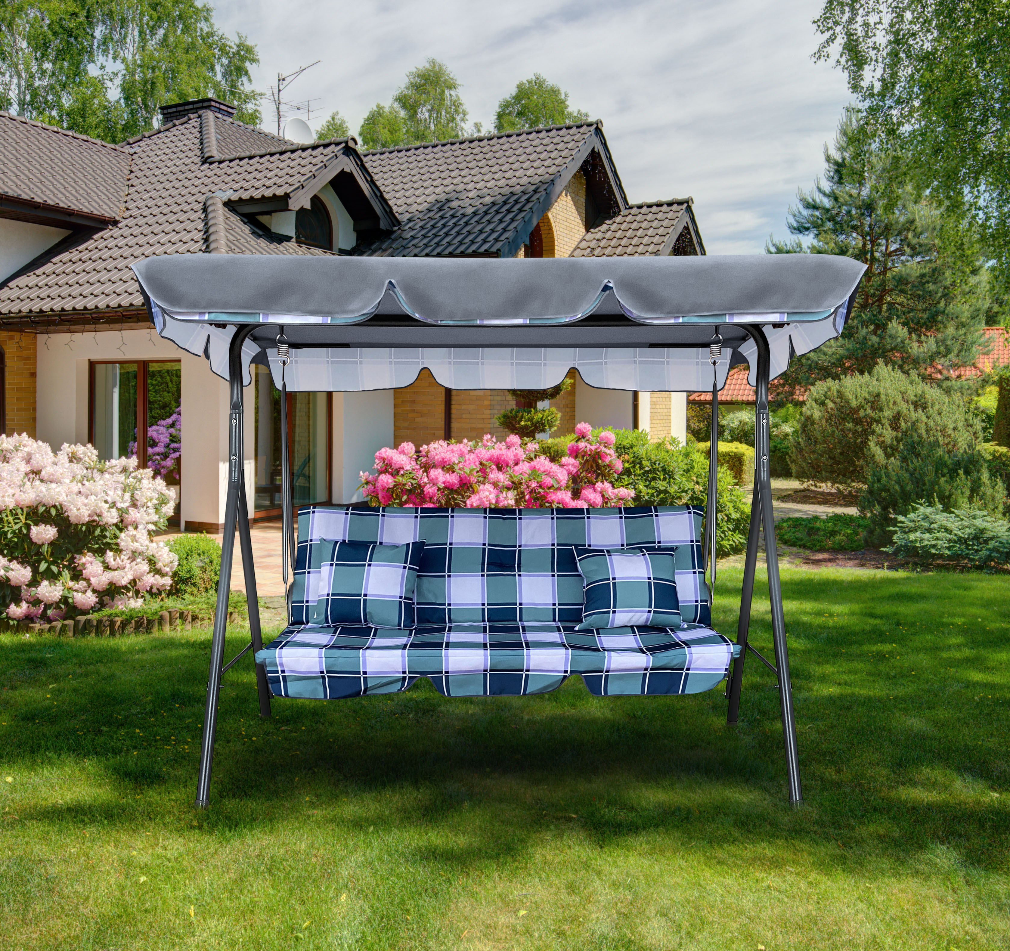 Zahradní houpačka MAJKA v moderním designu, vhodná pro venkovní využití na zahrady, terasy, balkóny či pláže.