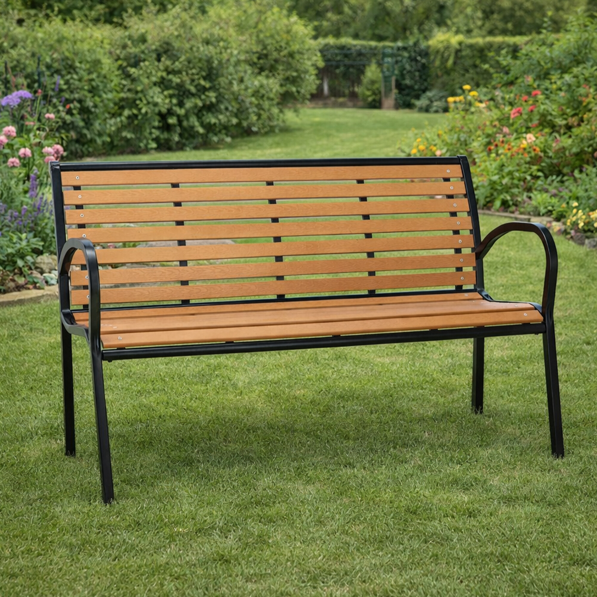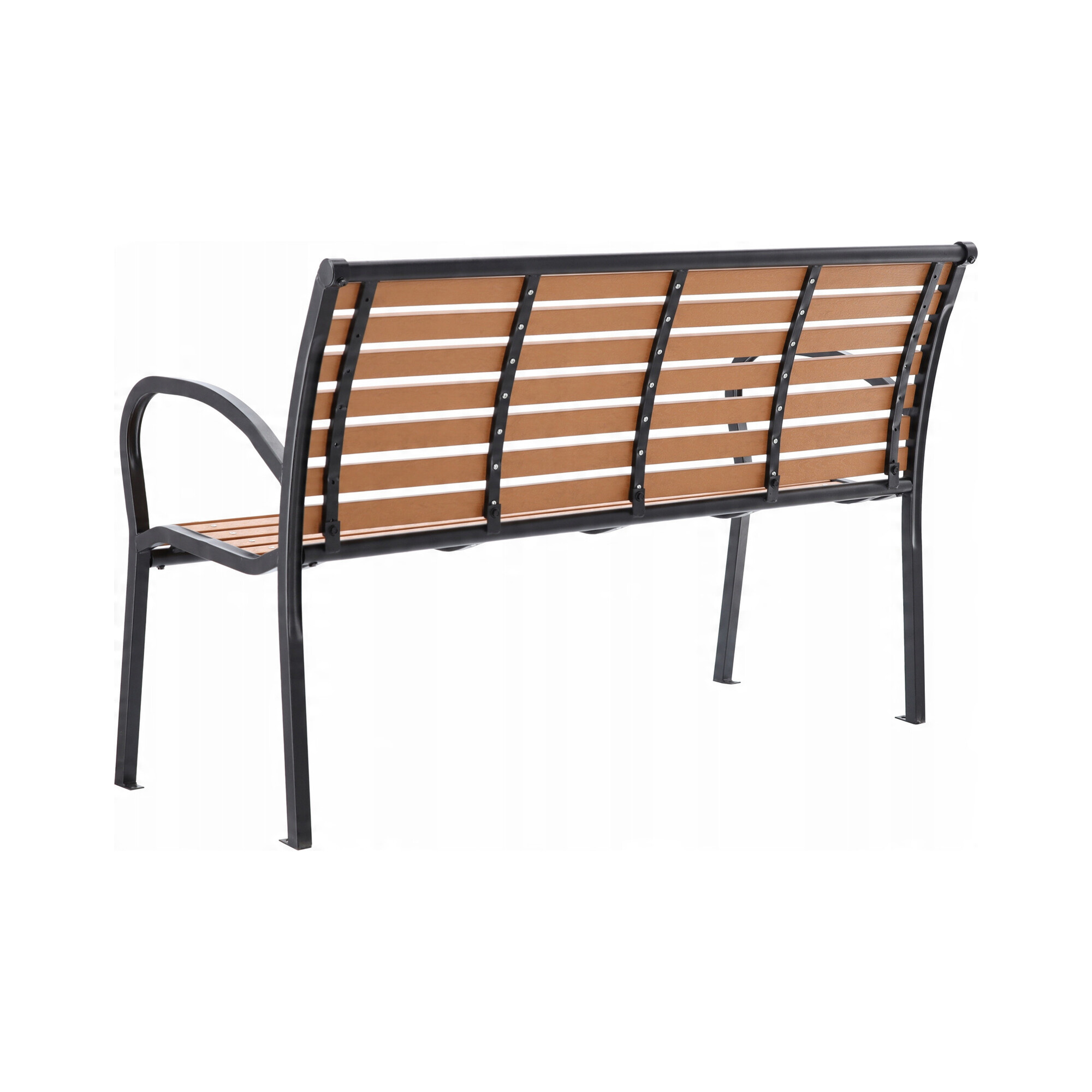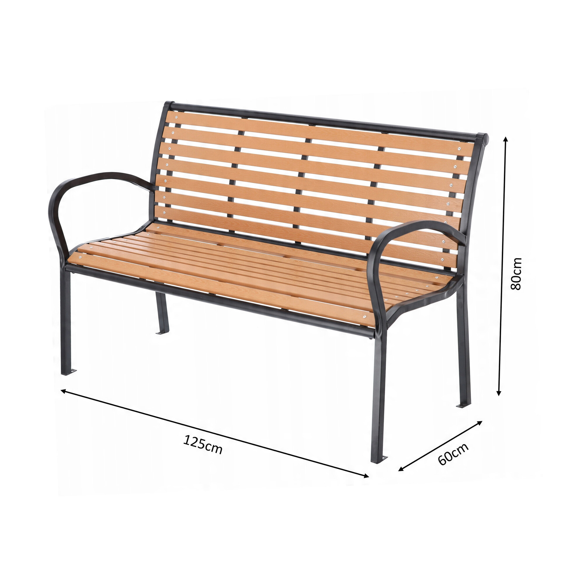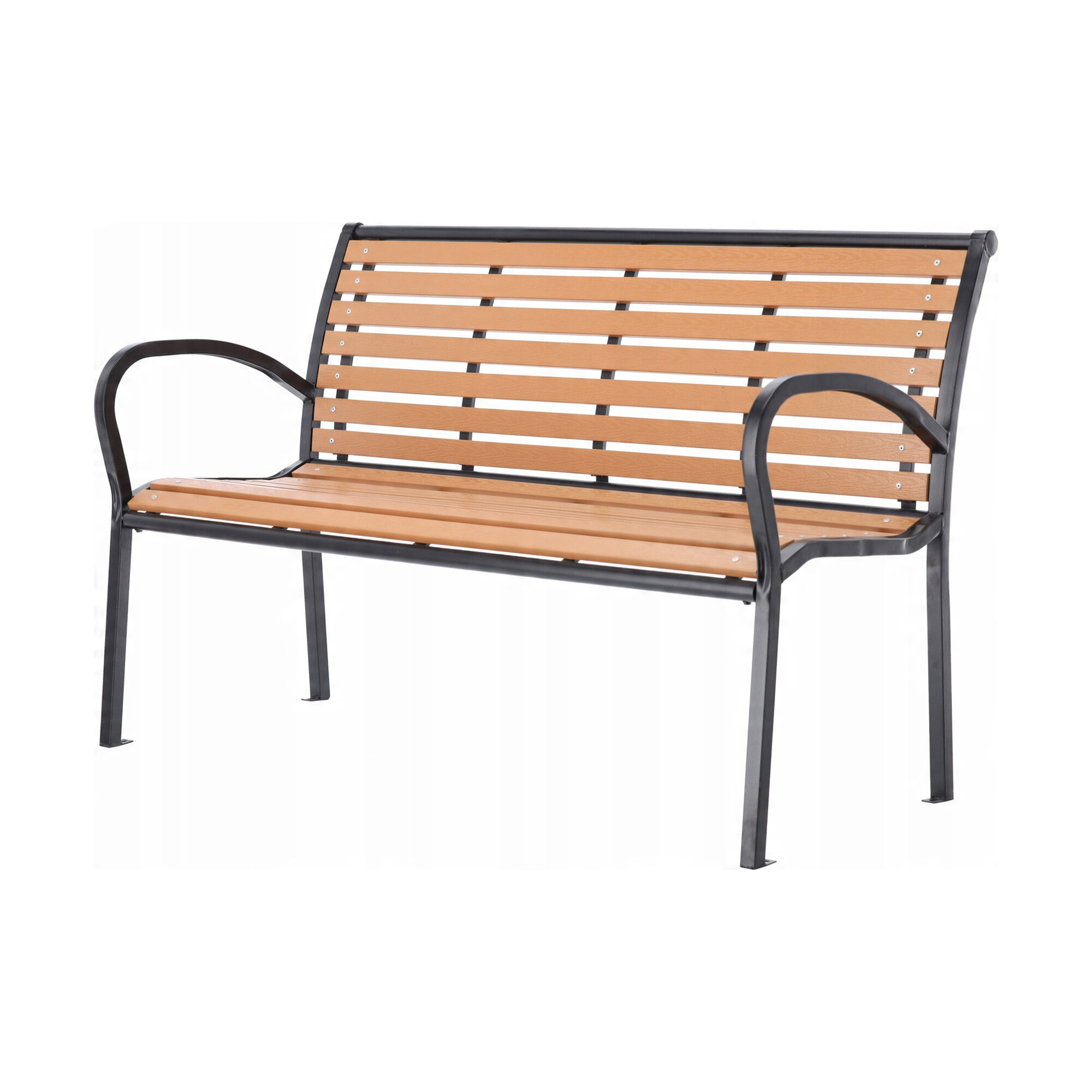 Pevná ocelová konstrukce, která je doplněna o plastové latě imitující dřevo.  Nosnost lavice 150 kg.