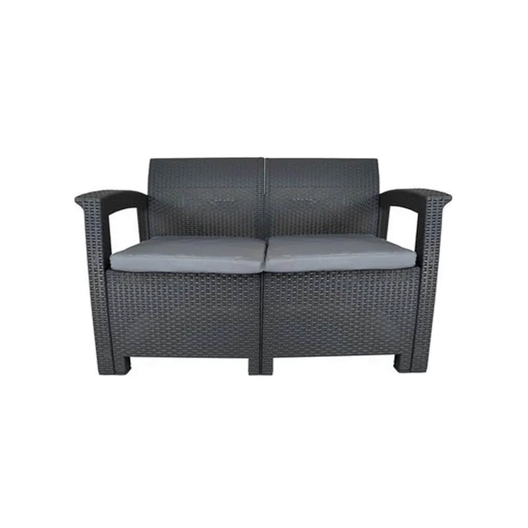 Stabilní konstrukce s opletem z kvalitního umělého ratanu v hnědé barvě. Pohodlné odnímatelné polštářky o tloušťce 4 cm poskytují potřebný komfort během sezení.