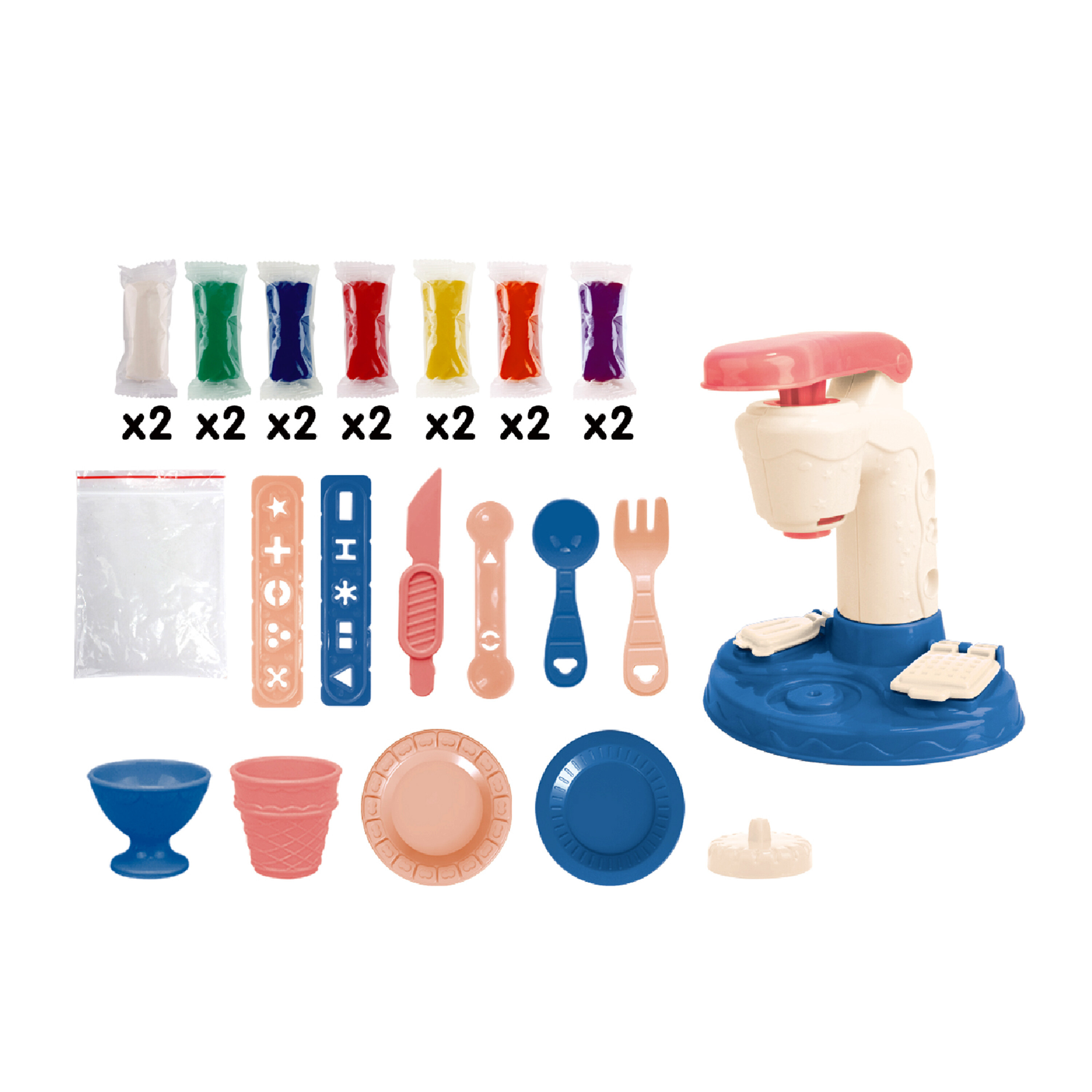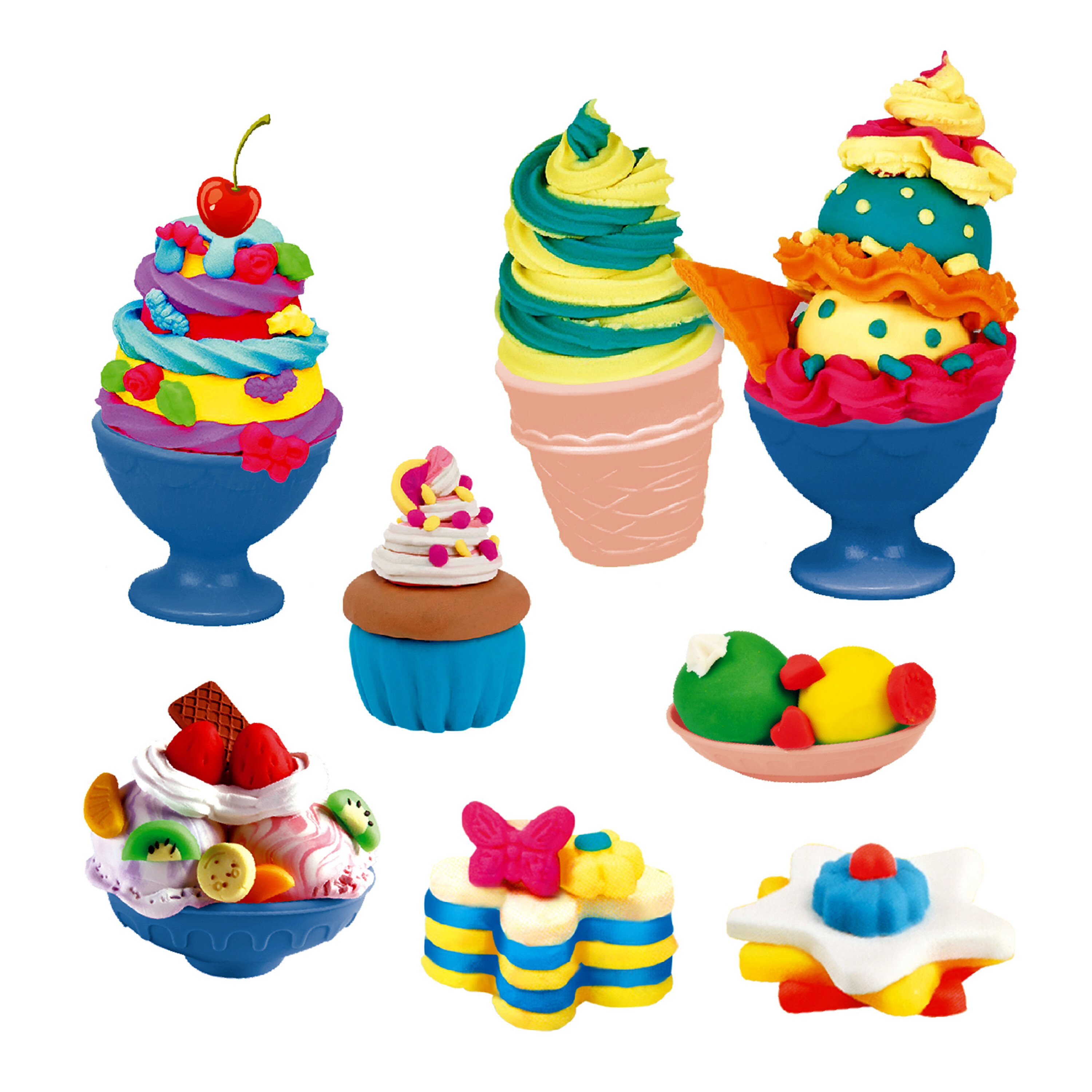 Stroj na výrobu zákusků, dortů a zmrzliny z plastelíny je skvělou zábavou pro rozvoj manuální zručnosti, kreativního myšlení a fantazie dítěte.