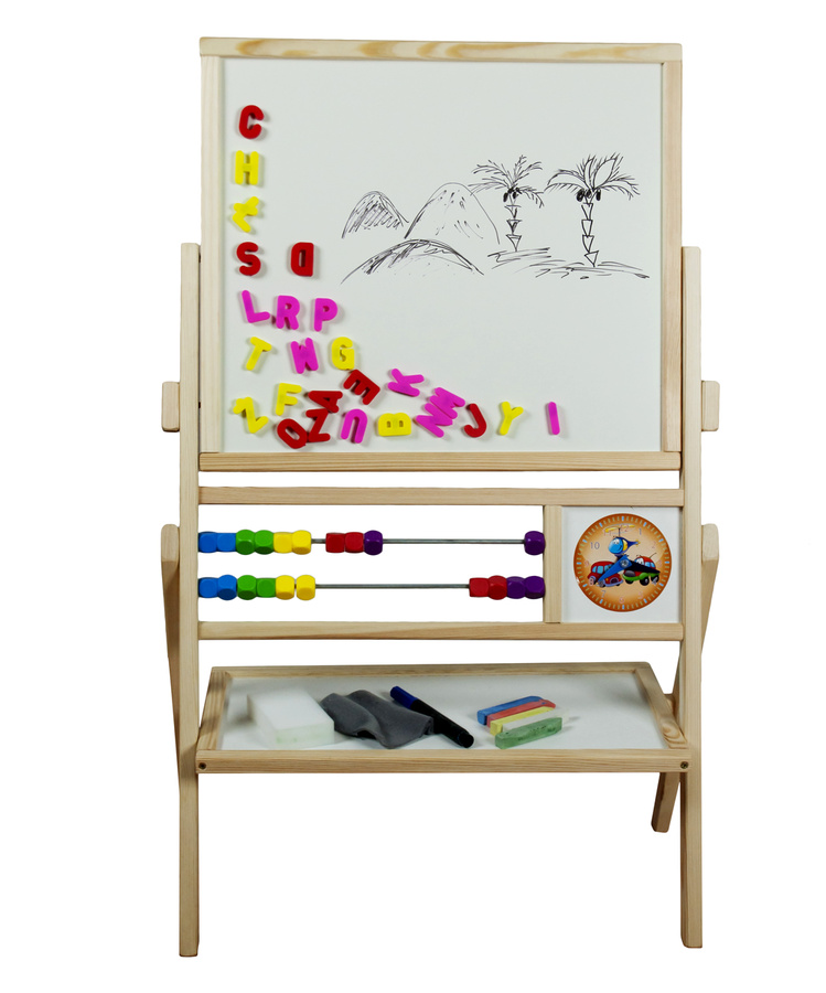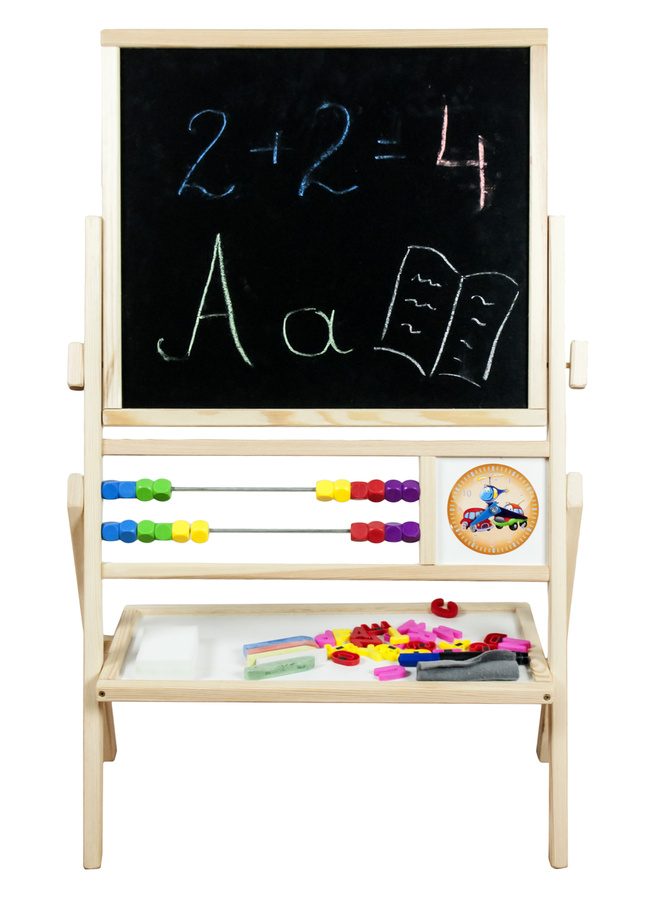 Otočná dětská magnetická tabule s odkládací poličkou, počítadlem a hodinamiod firmy Aga4Kids.