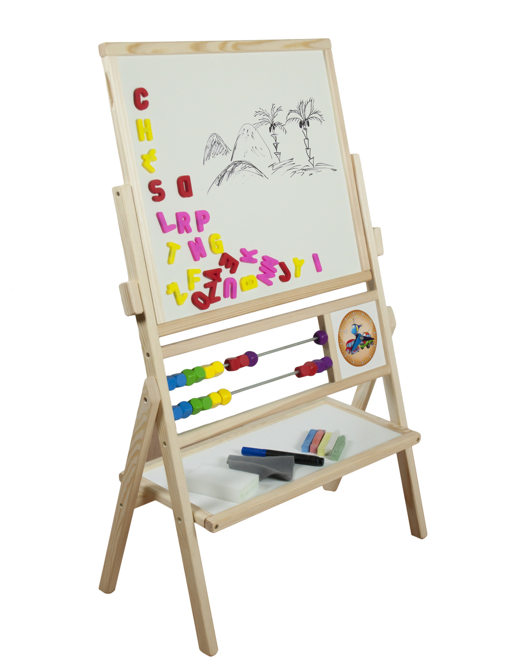 • Sada obsahuje - otočnou dětskou tabuli, počítadlo, hodiny