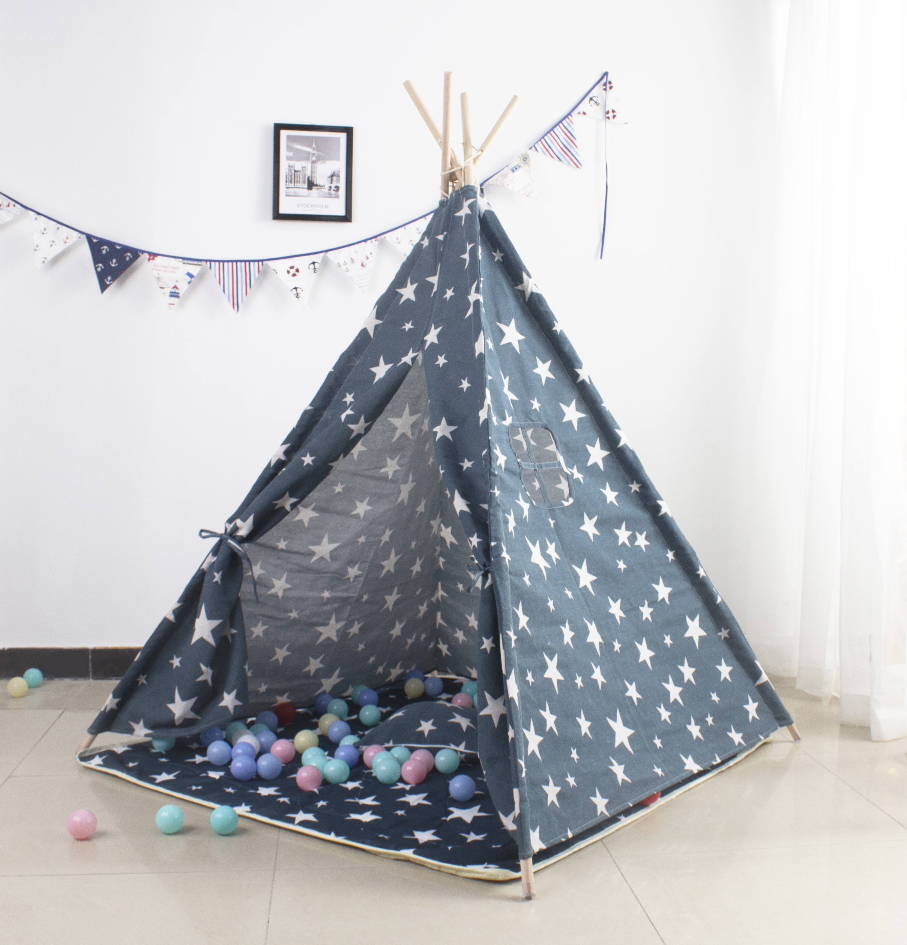 Aga4Kids Dětské Teepee Hvězdy Tmavě modrá