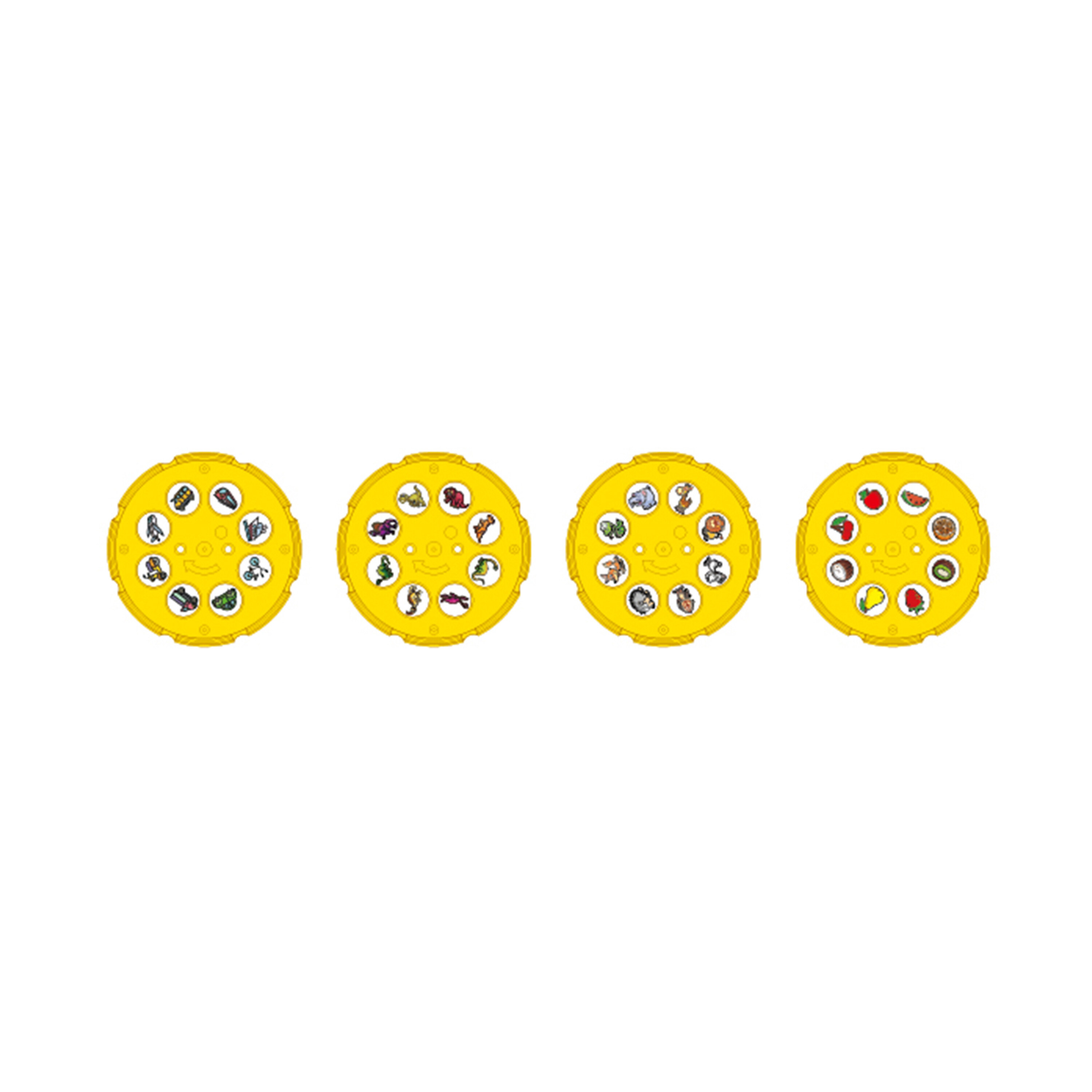 Součástí sady jsou čtyři vyjímatelné disky, které obsahují celkem 32 různých šablon pro kreslení a 6 fixů v různých barvách.