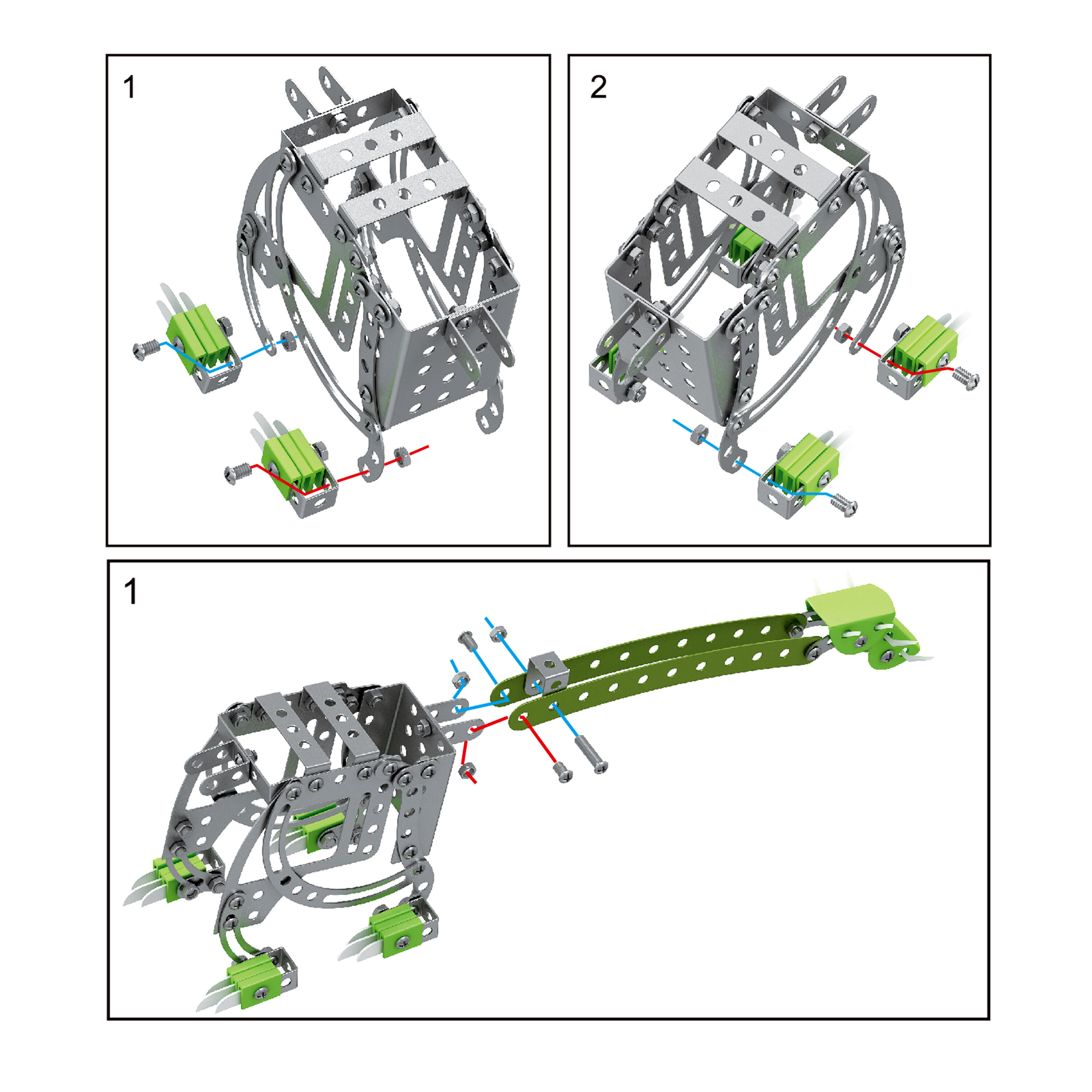 Stavebnice obsahuje 141 různých dílků, které lze spojovat pomocí šroubů a matiček. To nejen poskytuje nekonečné možnosti konstrukce, ale také pomáhá rozvíjet jemnou motoriku a konstrukční dovednosti.