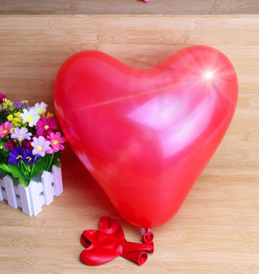 Nafukovací balónek má po nafouknutí tvar srdce a můžete ho nafukovat héliem i vzduchem.