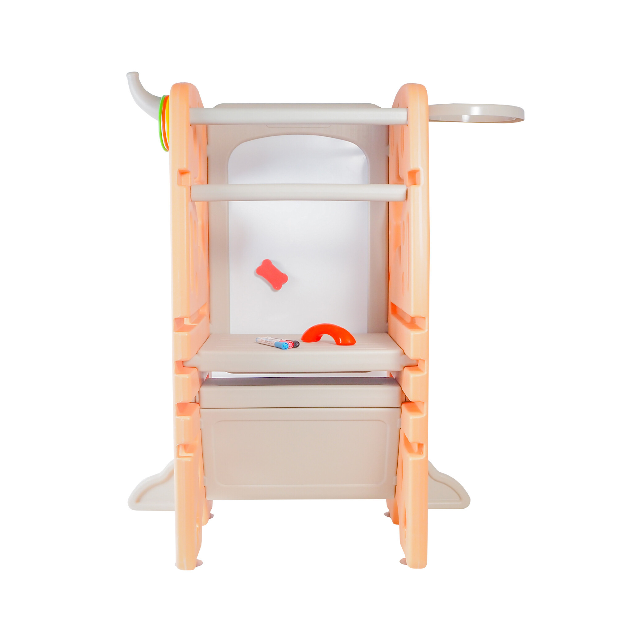 Dítě může vylézt na výukovou věž samostatně, schod od podlahy je ve výšce 12 cm, což pomáhá dítěti dostat se na věž bezpečně. Učící věž nevyužijete pouze v kuchyni, ale i při dalších činnostech jako je čištění zubů, mytí rukou, pomáhání tatínkovi v dílně nebo při podávání hraček, které jsou v horních policích.