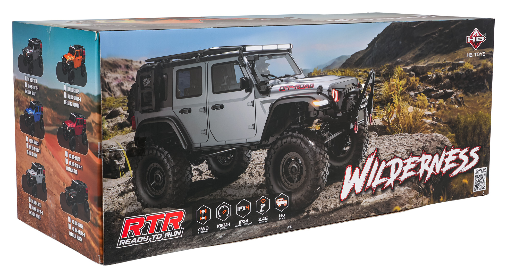 Dálkově ovládané auto Wilderness, vyrobené v měřítku 1:10, pro děti od čtrnácti let. Vozidlo má lakovanou karoserii, LED osvětlení: světlomety, brzdová světla, zpětná světla, směrová světla, po setmění vypadá nádherně. Individuální zavěšení na každé kolo, kovové tyče u ramen, vestavěný zadní a přední diferenciál. Velké gumové pneumatiky s běhounem, velmi velký úhel natočení způsobuje, že vozidlo překoná jakýkoli povrch. Na zadní části vozidla se nachází plnohodnotné rezervní kolo. Vozidlo jezdí všemi směry, snadno překonává překážky a navíc je vodotěsné. Maximální rychlost vozidla je 18 km/h, z ovladače můžeme nastavit konstantní rychlost vozidla. Na výběr máme dvě rychlosti. Auto je napájeno akumulátorem typu 7,4 V (v balení) a 4 x AA 1,5 V (není v balení) - ovladač.
