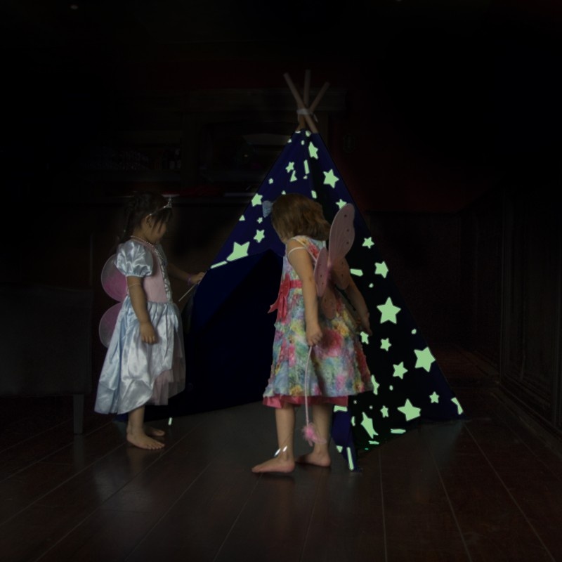 Fosforové hvězdy vytvoří v teepee noční oblohu, kterou si vaše děti rychle oblíbí. Tento stan poskytne dětem útulný koutek pro jejich hraní.