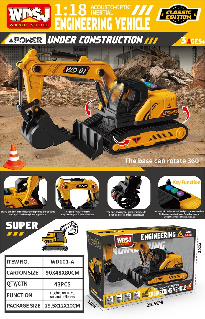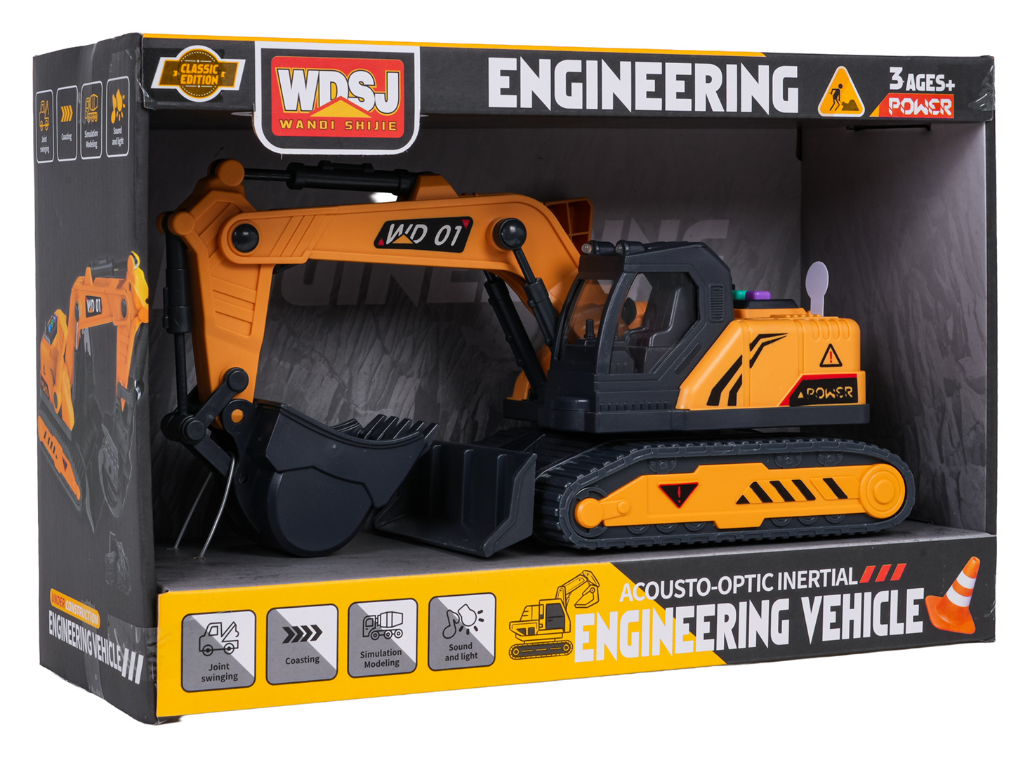 Interaktivní bagr s funkcí zvuku a světla a pohyblivými prvky pro děti od tří let. Bagr byl vyroben v měřítku 1:18 z nejkvalitnějších materiálů a s důrazem na detaily. Hračka má pohyblivé části, jako je lžíce nebo základna. Na střeše stavebního stroje se nachází panel s tlačítky, které spouštějí zvukové a světelné efekty. Hračka je napájena bateriemi typu 3 x AG13 (v balení).