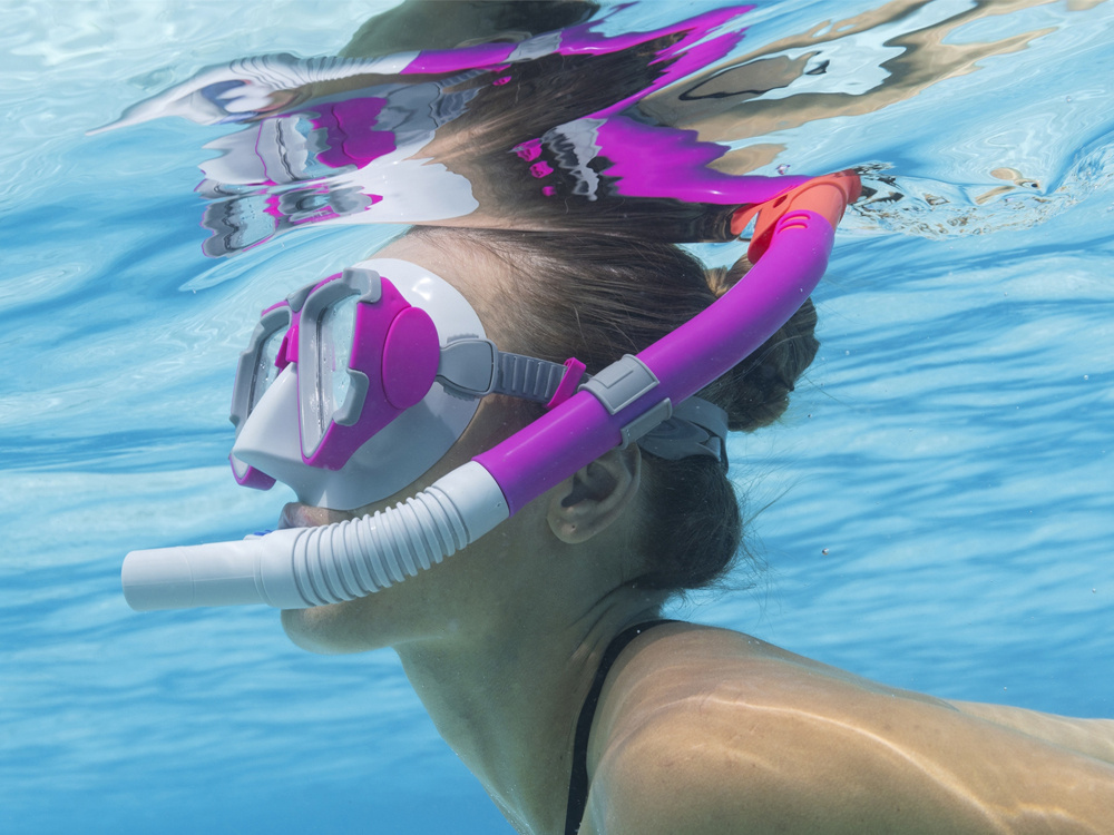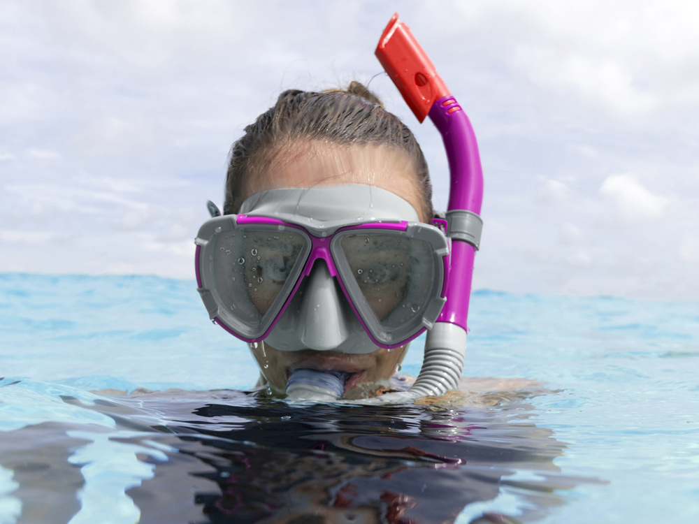 Maska Dominator Snorkel od společnosti Bestway® byla navržena pro milovníky podvodních výletů. Maska je určena pro plavce od 14 let. Sada obsahuje masku a šnorchl.Průhledná skla masky jsou vyrobena z polykarbonátu s ochrannou vrstvou proti UV záření, která chrání oči před ostrými slunečními paprsky. Hodí se k oceánu nebo k bazénu na dvorku.Maska má nepropustný okraj a plně nastavitelný hlavový pásek, který zajišťuje, že maska zůstane na hlavě přesně a pohodlně usazená. Jako bonus je celá sada pro větší bezpečnost vyrobena z materiálů bez latexu.