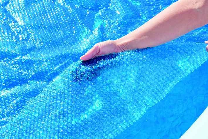 Solární plachta je vyrobena z bublinkové polyetylénové tepelně izolační plachty.