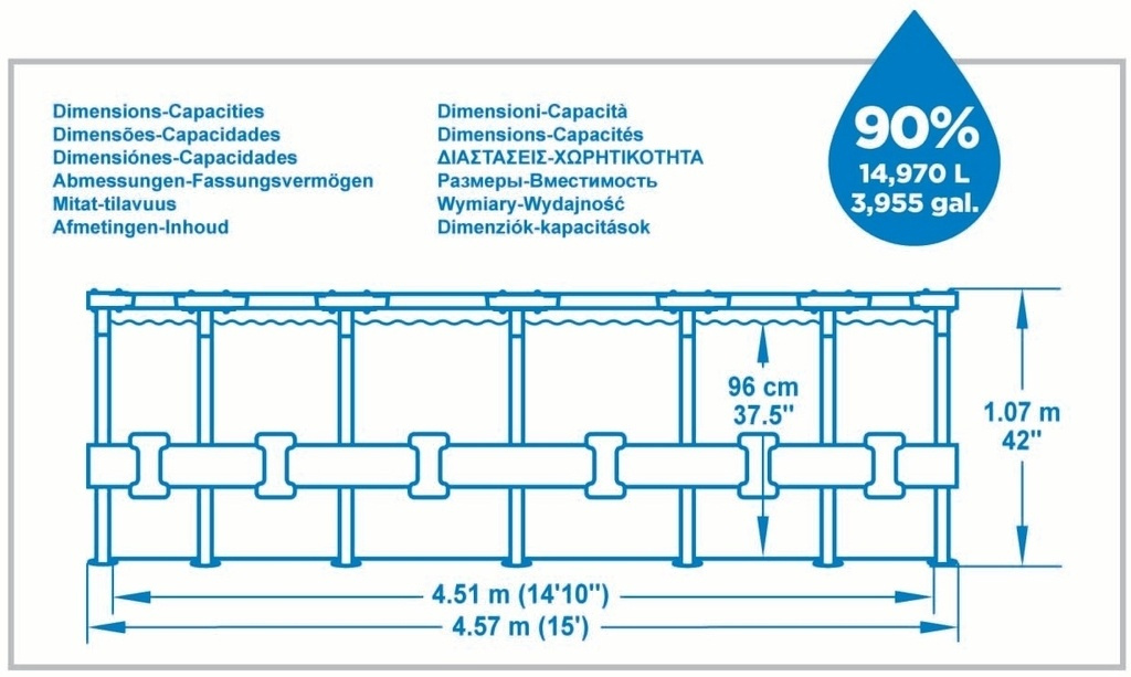 - Stačí pouze sestavit kovovou konstrukci a bazén napustit vodou