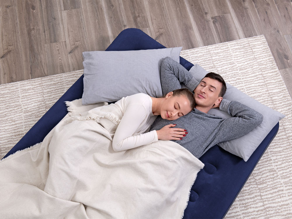 Je dobré mít takovou matraci v domě, bude se hodit při návštěvě hostů, kteří se ze známých důvodů nebudou moci vrátit domů a potřebují přenocovat. Dobře poslouží při kempování i lenošení na pláži. Pohodlné a praktické.O konstrukci matrace se stará systém Coil-beam, který pomocí vodorovných trubek uvnitř stabilně spojuje obě plochy. Do správné velikosti se snadno vejdou dvě osoby s maximální hmotností 300 kg. Velurový povrch je příjemný na dotek.Po použití může být nutné výrobek znovu nafouknout, aby byl dostatečně pevný.