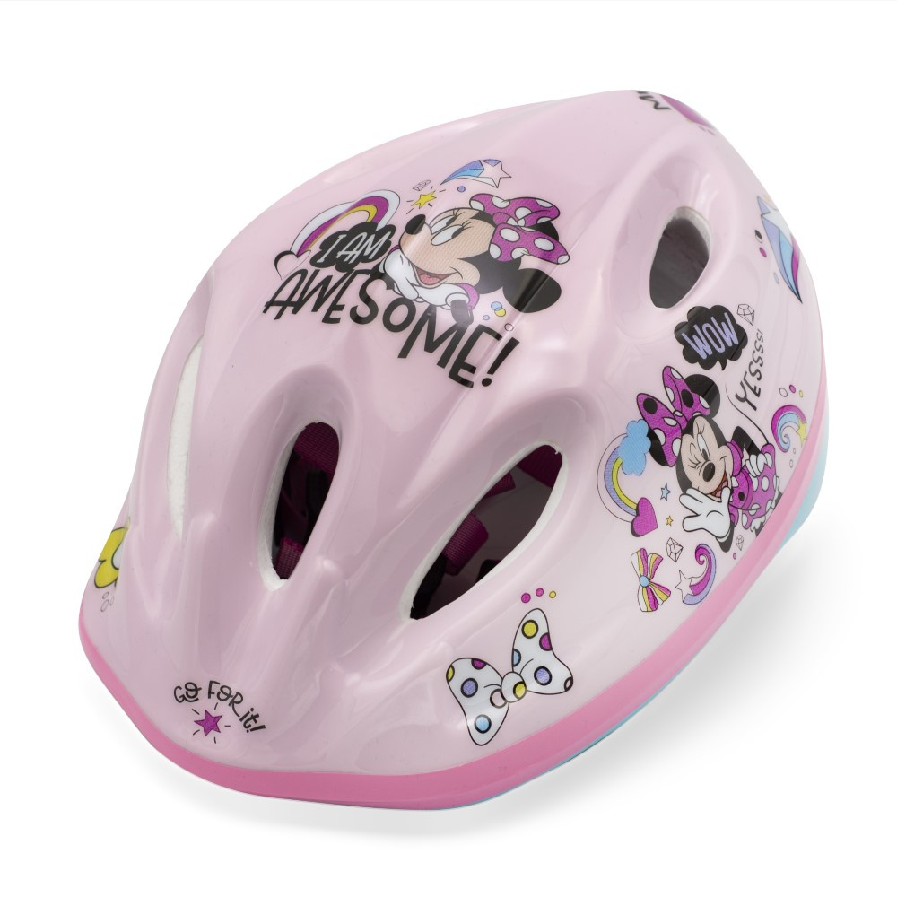Přilba je doporučena pro děti při používání kol, bruslí, koloběžek atd. Vnější část helmy je vyrobena z PVC a zdobena postavičkami z Minnie, vnitřní část je vyrobena z náraz pohlcující pěny EPS. Helma je vybavena nastavovacím knoflíkem pro přizpůsobení helmy hlavě dítěte, popruhy na obou stranách se zapínají pod bradou pomocí přezky s měkkou podložkou. V plášti helmy jsou ventilační otvory.
