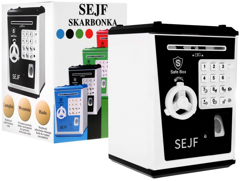- velké prasátko ve tvaru trezoru, napájené 3 bateriemi AA 3 x 1,5 V (nejsou součástí dodávky),