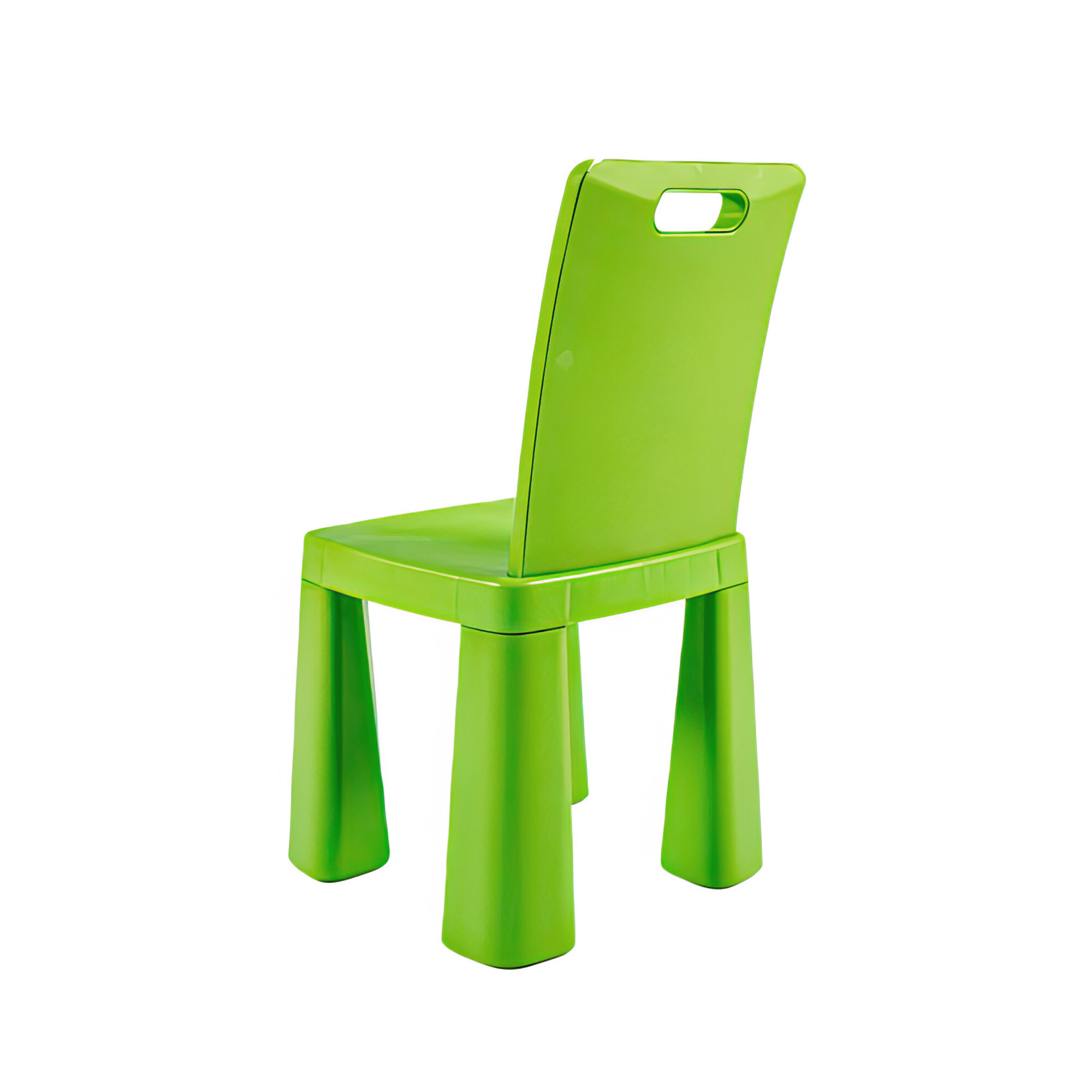 Jedním z praktických prvků této židle je otvor na opěradle, který umožňuje snadnou manipulaci. Děti i dospělí mohou židli snadno přenášet z místa na místo, což je ideální pro rychlé změny v uspořádání prostoru nebo při úklidu.