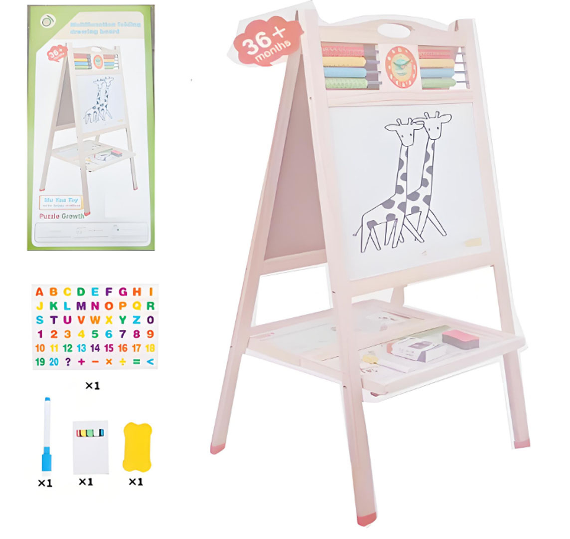 Velká dřevěná tabule je vzdělávací hračka pro děti od 3 let. Tabule je z jedné strany bílá magnetická a z druhé křídová. Bílá strana slouží k psaní fixem, který je součástí sady. Fix má magnet, aby jej bylo možné připevnit na tabuli, a gumu na mazání. V horní části tabule se nachází počítadlo a hodiny s posuvnými ručičkami. Na křídové straně lze malovat křídou, která je součástí sady, a poté vše vymazat houbičkou. Hra s tabulí pozitivně ovlivňuje manuální dovednosti, koncentraci a představivost.