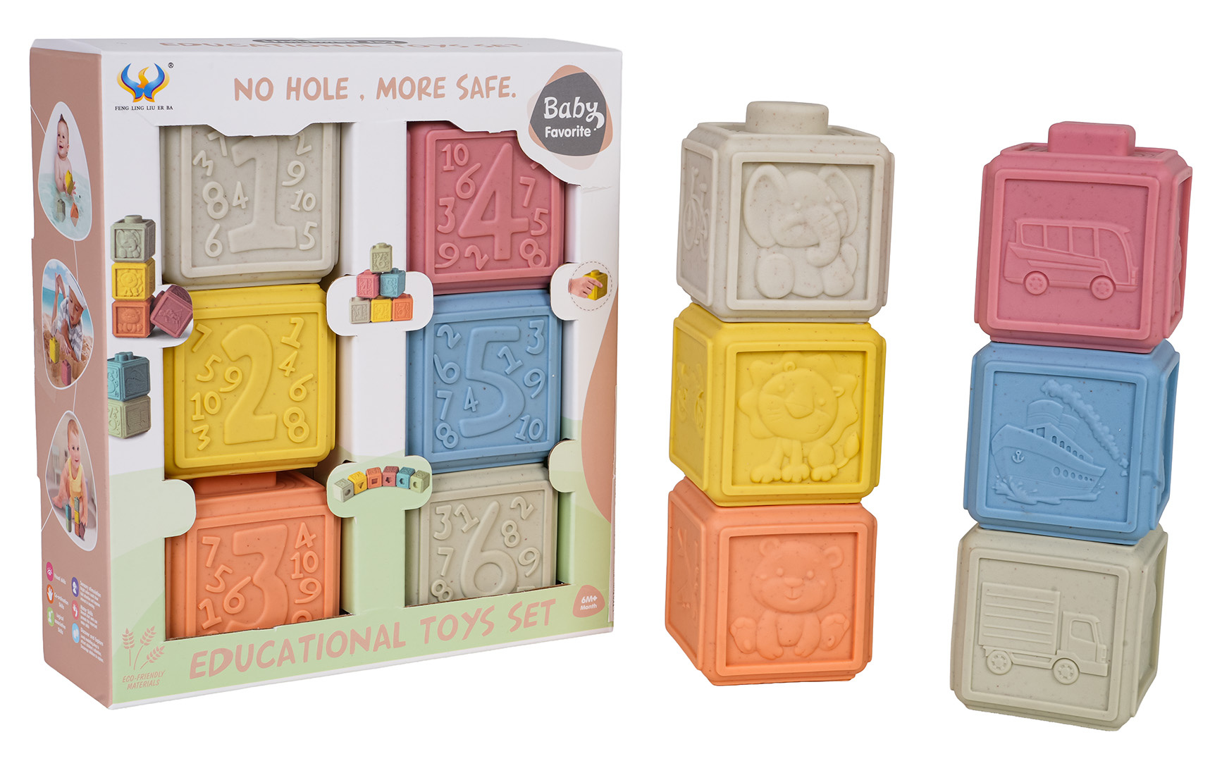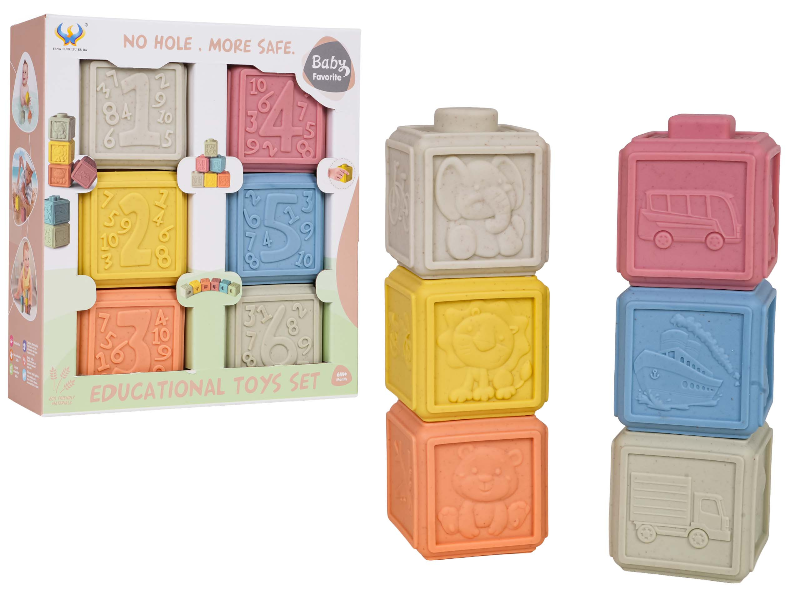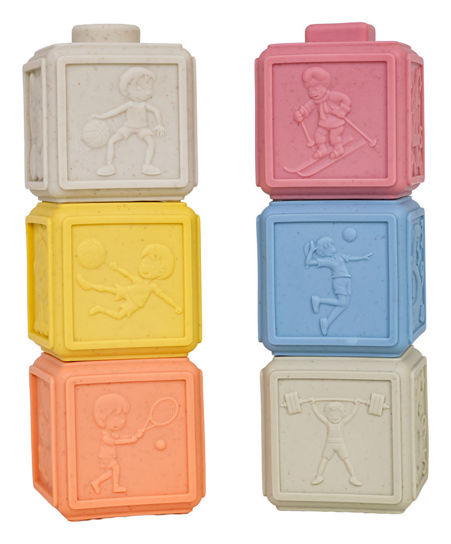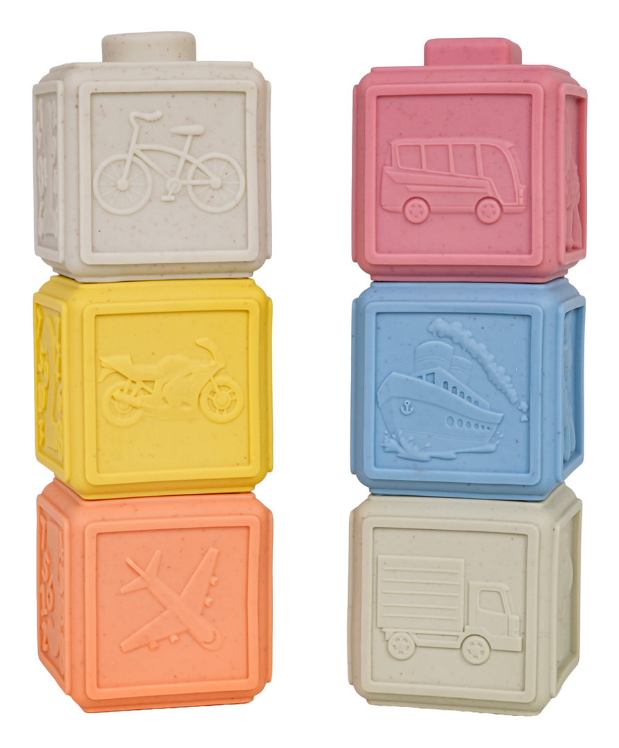 Ekologická sada měkkých senzorických kostek pro děti od šesti měsíců věku. Různorodé barvy stimulují smysly dítěte a různé tvary povzbuzují ke kreativní hře. Díky různorodé textuře každá kostka poskytuje dítěti jiné smyslové vjemy. Kostky mohou být používány k terapeutickým, vzdělávacím účelům nebo jako smyslové hračky pro děti. Díky své konstrukci se také ideálně hodí jako kousátka.
