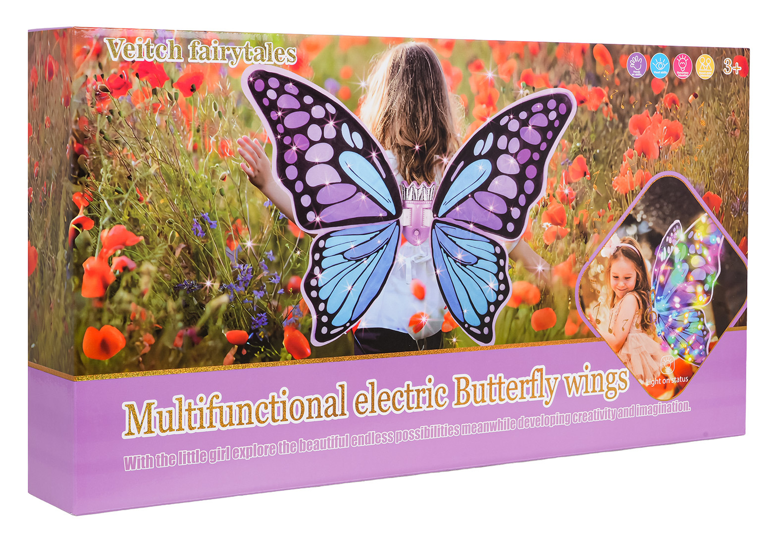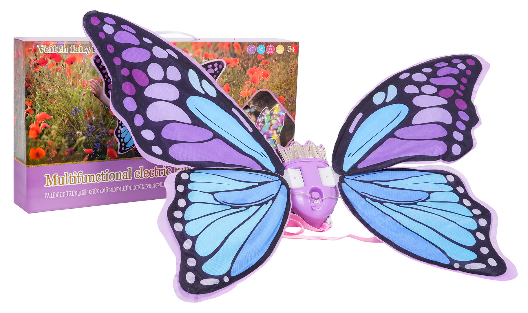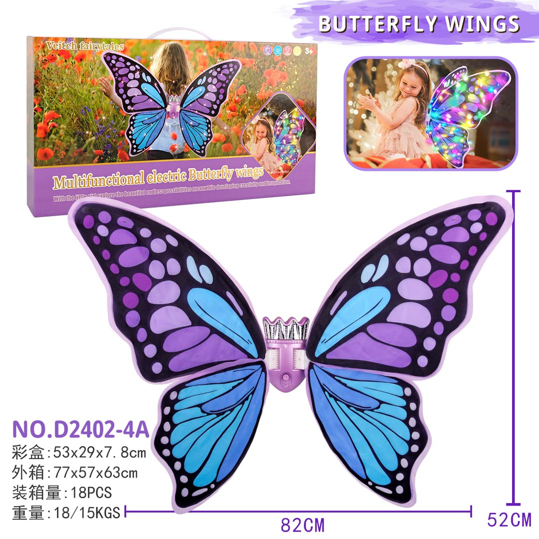 Kouzelná, fialová motýlí křídla s efektem světla, pro děti od tří let. Hračka byla vyrobena s důrazem na detaily, vaše ratolest se v ní bude cítit kouzelně. Křídla ideální budou na ples, představení nebo pro každodenní zábavu. Hračka je napájena bateriemi typu 4 x AA 1,5 V (nejsou součástí balení).