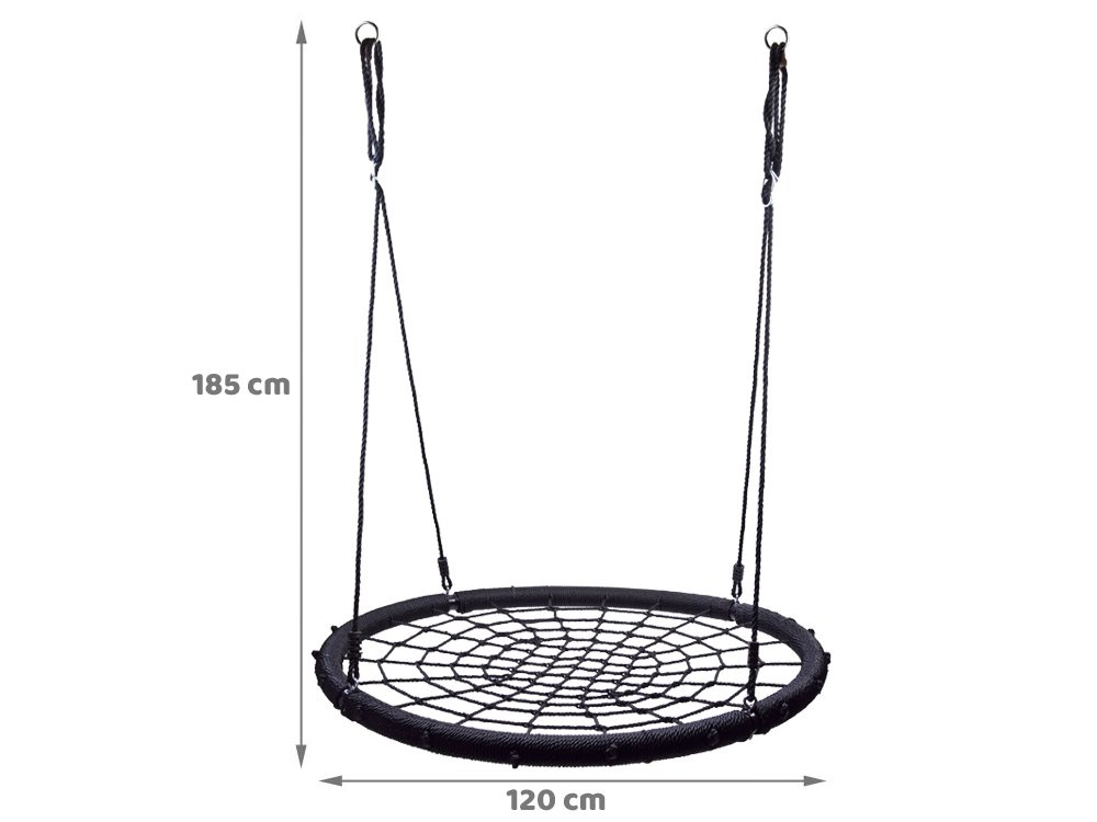 SkyFlyer Houpačka Čapí hnízdo o průměru 120 cm s maximální nosností 150 kg poskytne spoustu zábavy na každé zahradě. Pevná houpačka s pevným rámem a silným provazovým výpletem bude vhodná pro děti i dospělé. Kovové závěsné límce jsou univerzální, takže je lze připevnit kamkoli. Houpačka je ideální na zahradu, terasu i do pokoje.