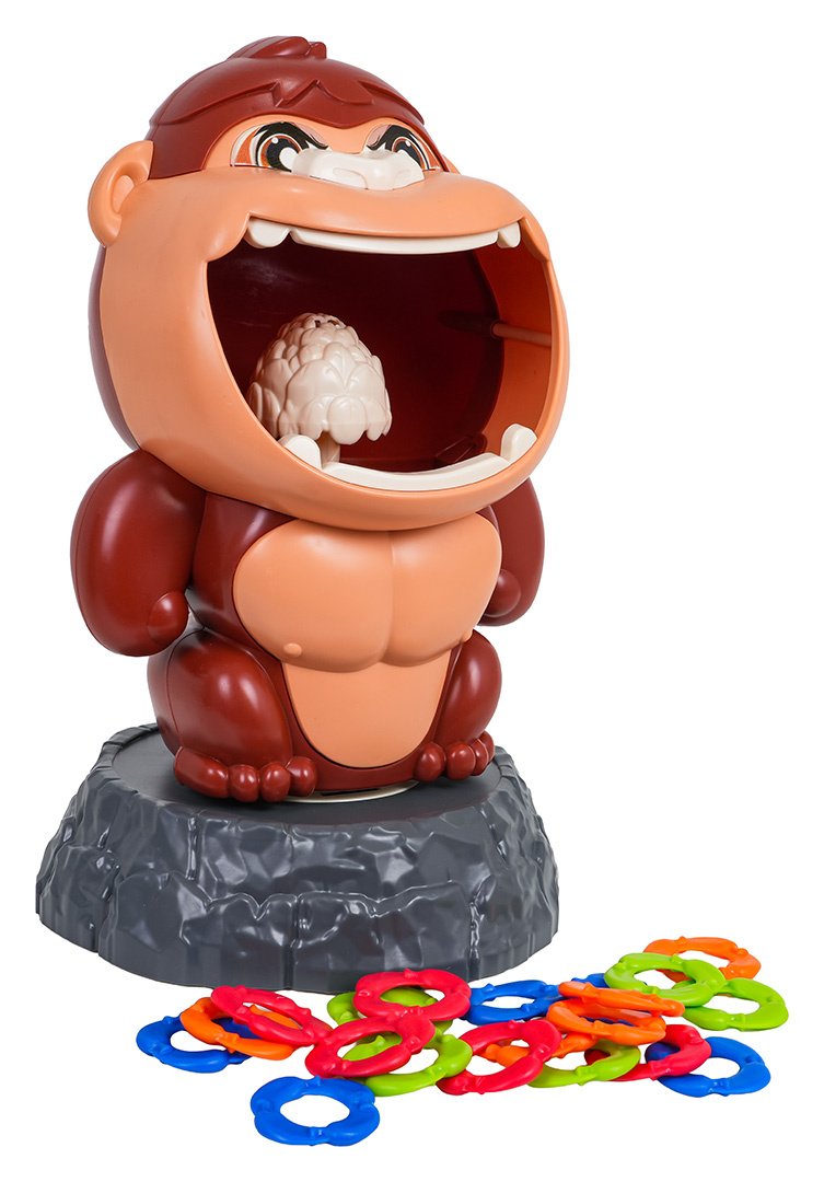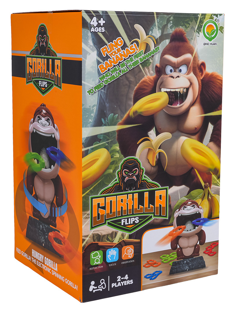 Obratnostní hra Gorila pro děti od čtyř let. Hra se skládá z figurky gorily na podstavci a kotoučů. Prvky sady byly vyrobeny z nejkvalitnějších materiálů, bezpečných pro děti. Úkolem hráčů je hodit kotouč a trefit se přímo do středu tlamy. Úkol je ztížený, protože gorila se otáčí kolem vlastní osy. Ten z účastníků, který jako první umístí všechny kotouče do tlamy gorily, vyhrává. Hra učí obratnosti. Může ji hrát 2 až 4 hráči. Hra je napájena bateriemi typu 3 x AA 1,5V (nejsou součástí balení).