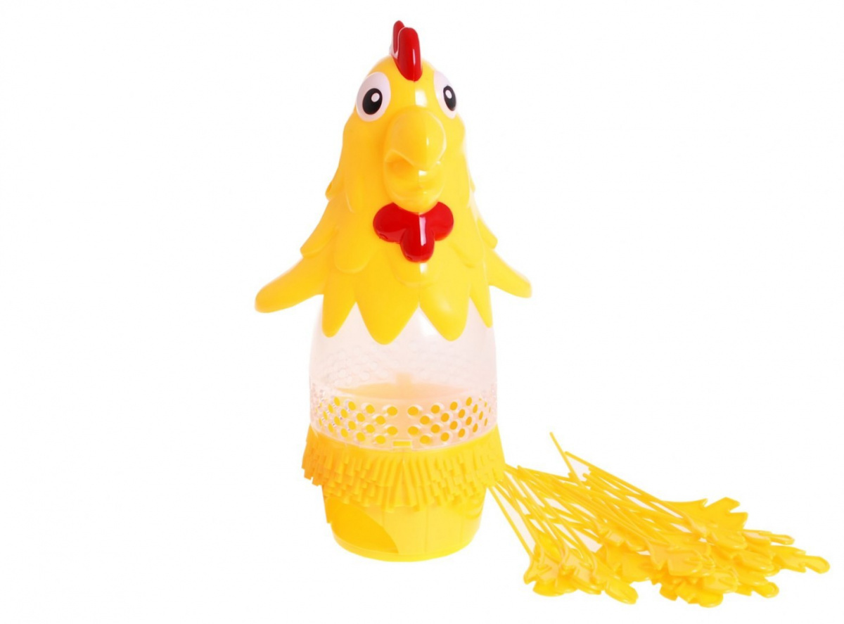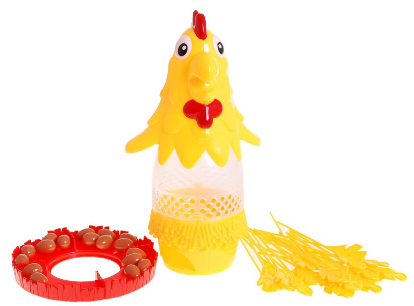 Nejprve hru sestavte, nainstalujte hnízdo na základnu, poté připevněte průhledný kuřecí trup a hlavu.