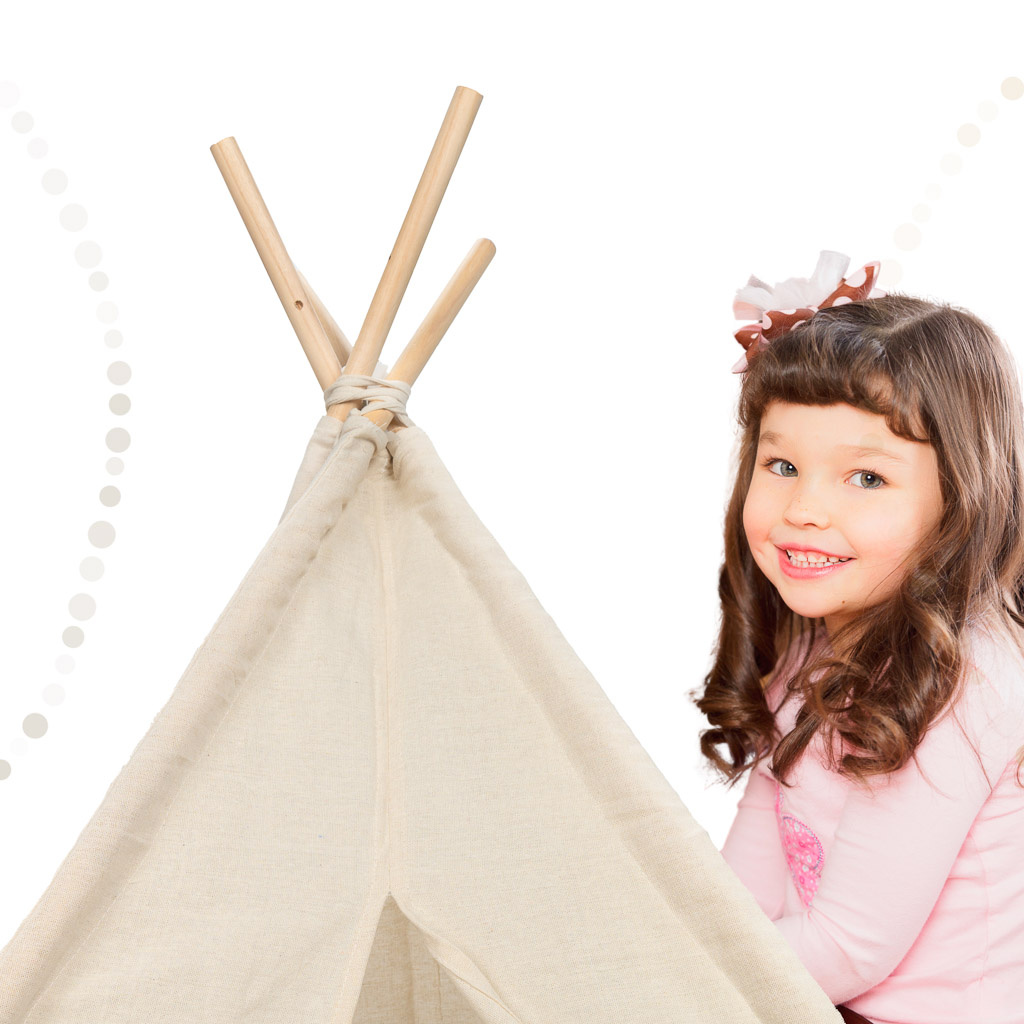 Jedinečný stan ve tvaru teepee je dokonalým dárkem pro Vaše děti. Může být místem k hře a po zábavě, šup a schováme tam hračky.