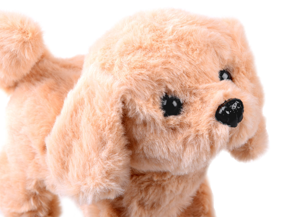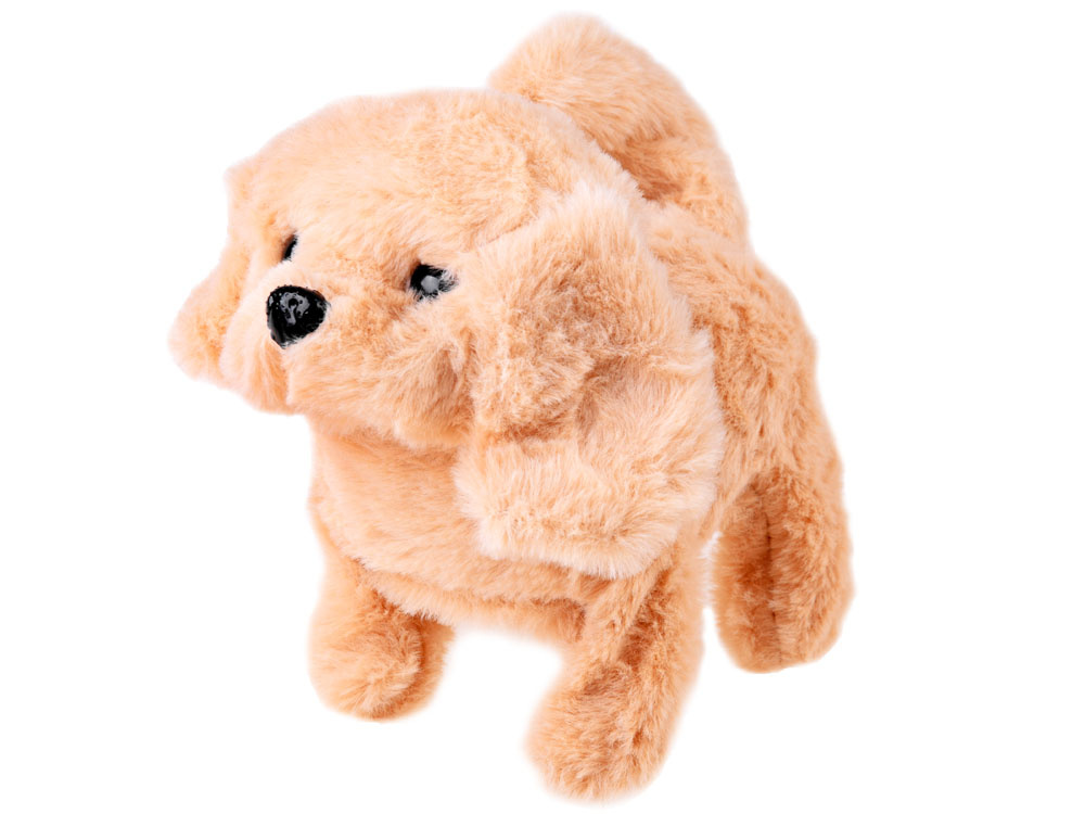 - plyšový pes béžové barvy s měkkou srstí, černýma očima a nosem