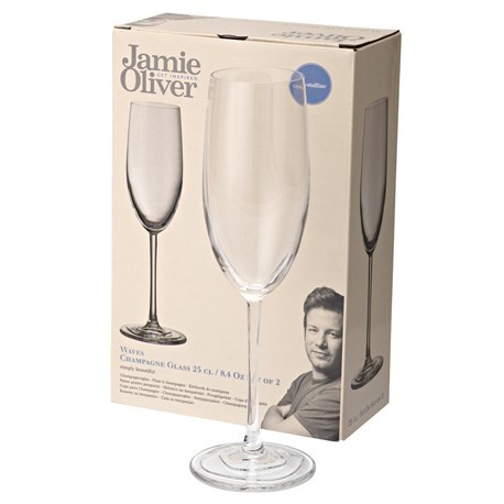 Sada 2 sklenic na sekt - Jamie Oliver - Waves. Ručně foukané sada obsahuje 2 průzračné sklenice na sekt o objem 250 ml. Jednoduchý a elegantní vzhled s vlnová ním. Křišťálové sklo v nejčistší podobě Vhodné do myčky na nádobí.
