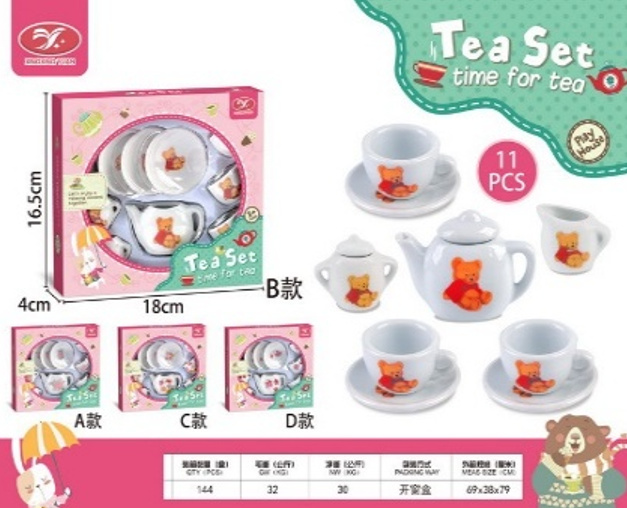 Ceramická sada na čaj s květinovým motivem pro děti starší tří let. Sada se skládá z 11 prvků, jako jsou konvička, cukřenka, hrneček na mléko, 3 šálky a 3 talířky. Byl vyroben z nejkvalitnějších materiálů s důrazem na detaily. To ideální dárková sada.
