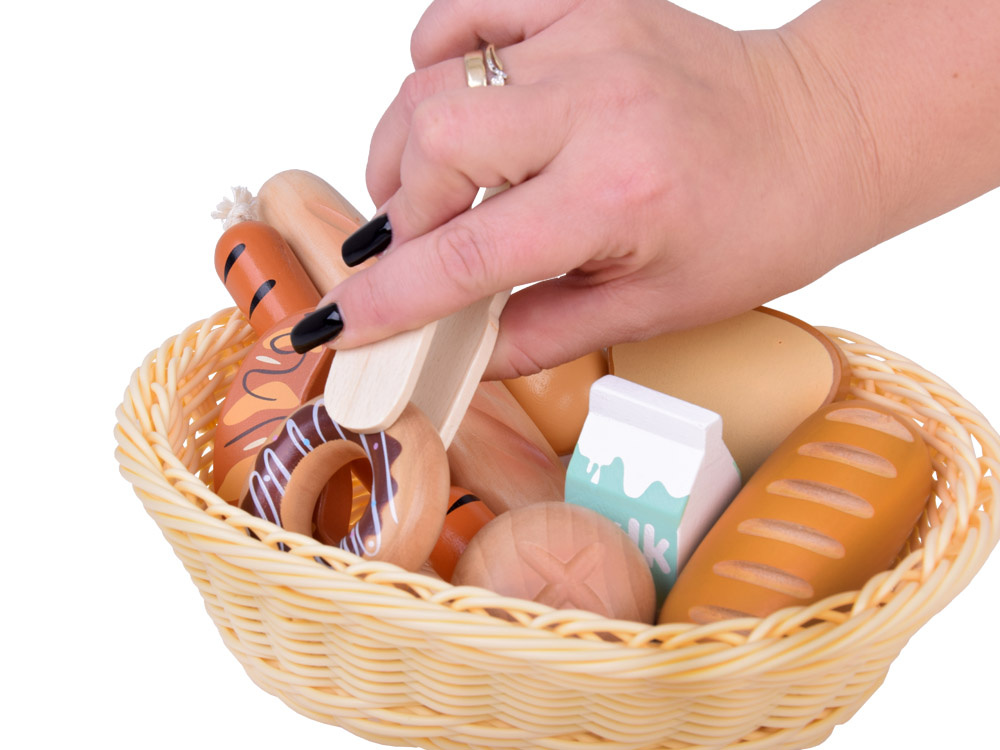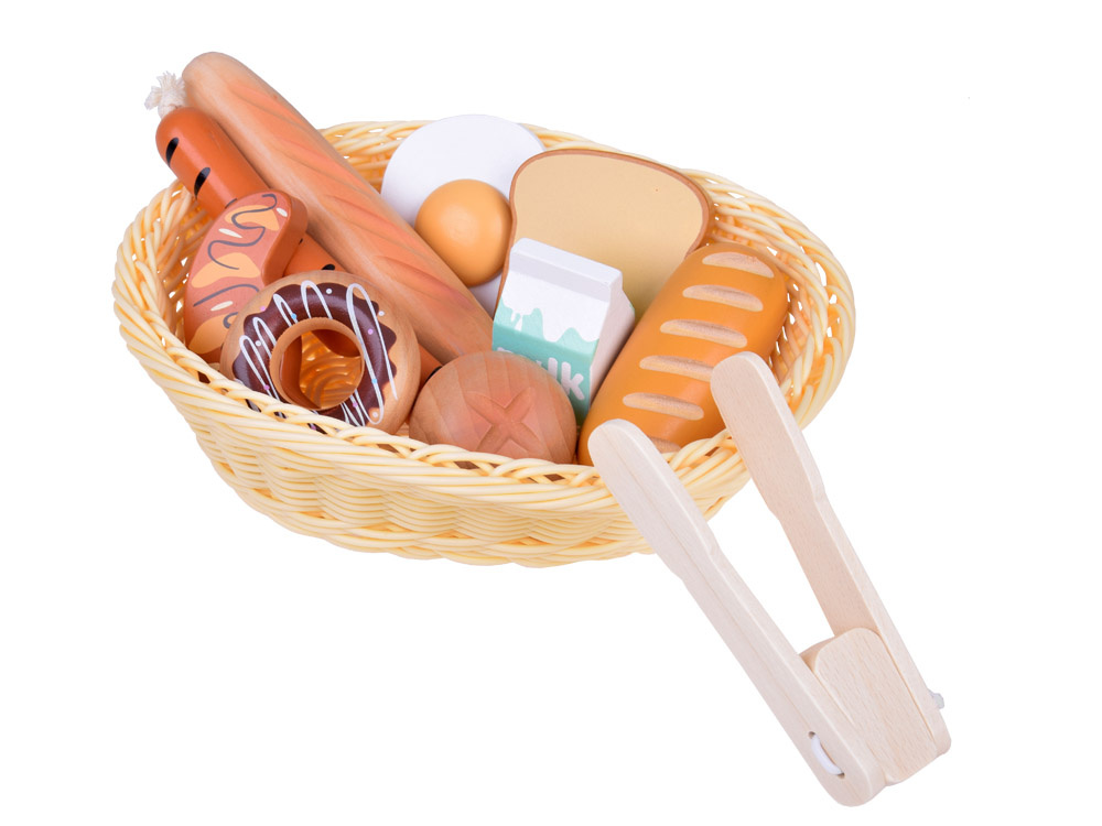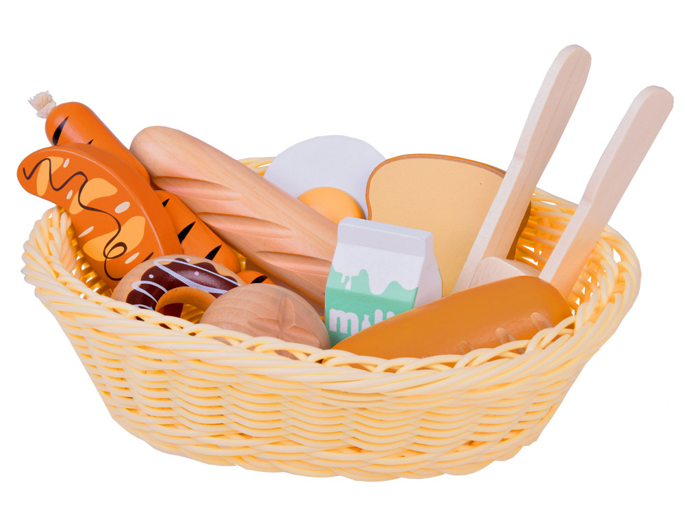 Sada s pečivem je skvělý způsob, jak rozvíjet představivost a manuální dovednosti u dětí. Hra na domácnost, vaření a napodobování dospělých podporuje učení se každodenním činnostem a poznávání názvů potravin. Barevný košík naplněný dřevěným pečivem se jistě stane oblíbenou hračkou malého dítěte, poskytující mu hodiny vzdělávací zábavy.