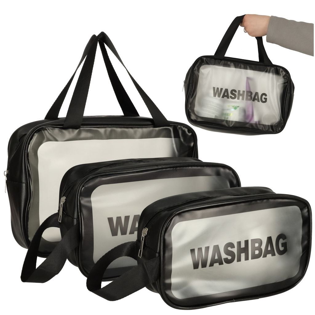 Tři praktické taštičky na make-up na každou cestu! Každá z toaletních taštiček je vyrobena z nepromokavého materiálu vynikající kvality, takže si můžete být jisti, že vaše kosmetika i zbytek zavazadla budou v bezpečí. Kosmetické taštičky majírůzné velikosti, ale každá je uzavíratelná na zip a má praktické ucho. Sadu lze použít i k uložení dalších věcí.