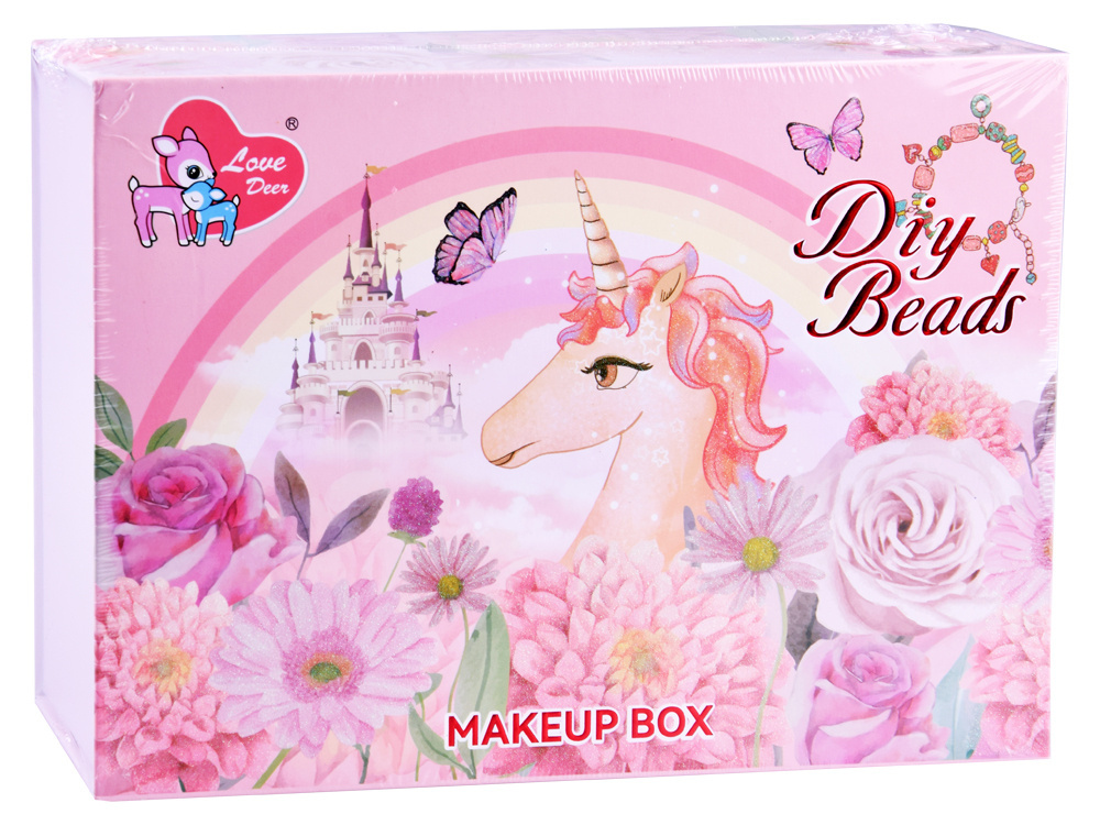 Sada je vhodná i pro starší dívky, které se mohou samy nalíčit pro zvláštní příležitosti. Rakev se vám bude hodit i při hře na maskérku. Kromě toho sada obsahuje také barevné korálky různých tvarů, z nichž si můžete vytvořit vlastní náhrdelník nebo náramek, který doplní váš make-up.