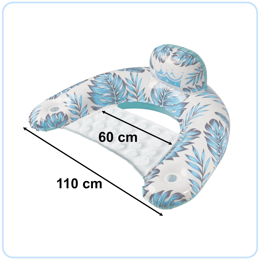 Kromě samozřejmého pohodlí, které výrobek poskytuje, nabízí nafukovací křeslo také vizuální zážitek - zajímavý a barevný design s motivem palmy a listů monstery jistě zaujme nejednoho člověka!