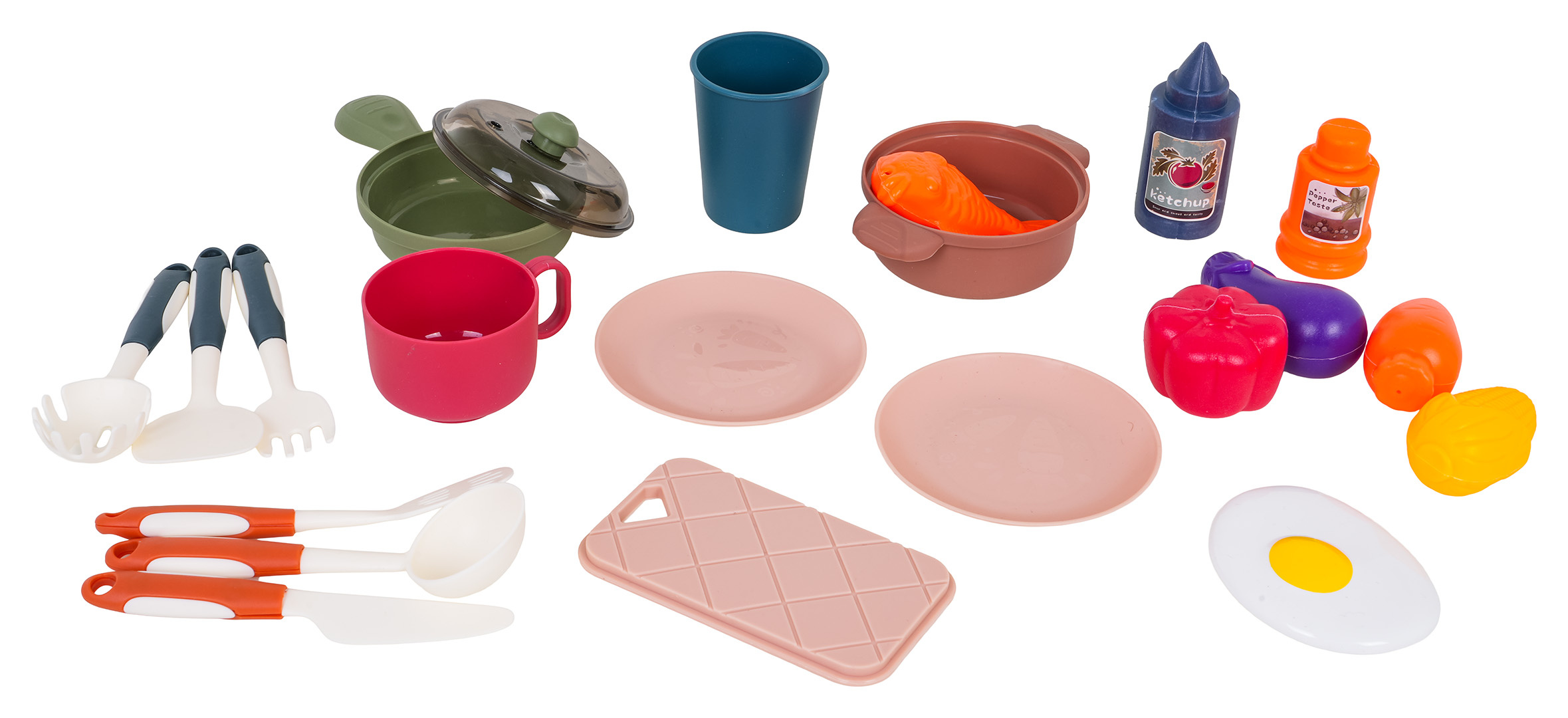 - atrapy potravinových produktů: ryba, žlutá paprika, rajče, mrkev, lilek, kukuřice, volské oko.